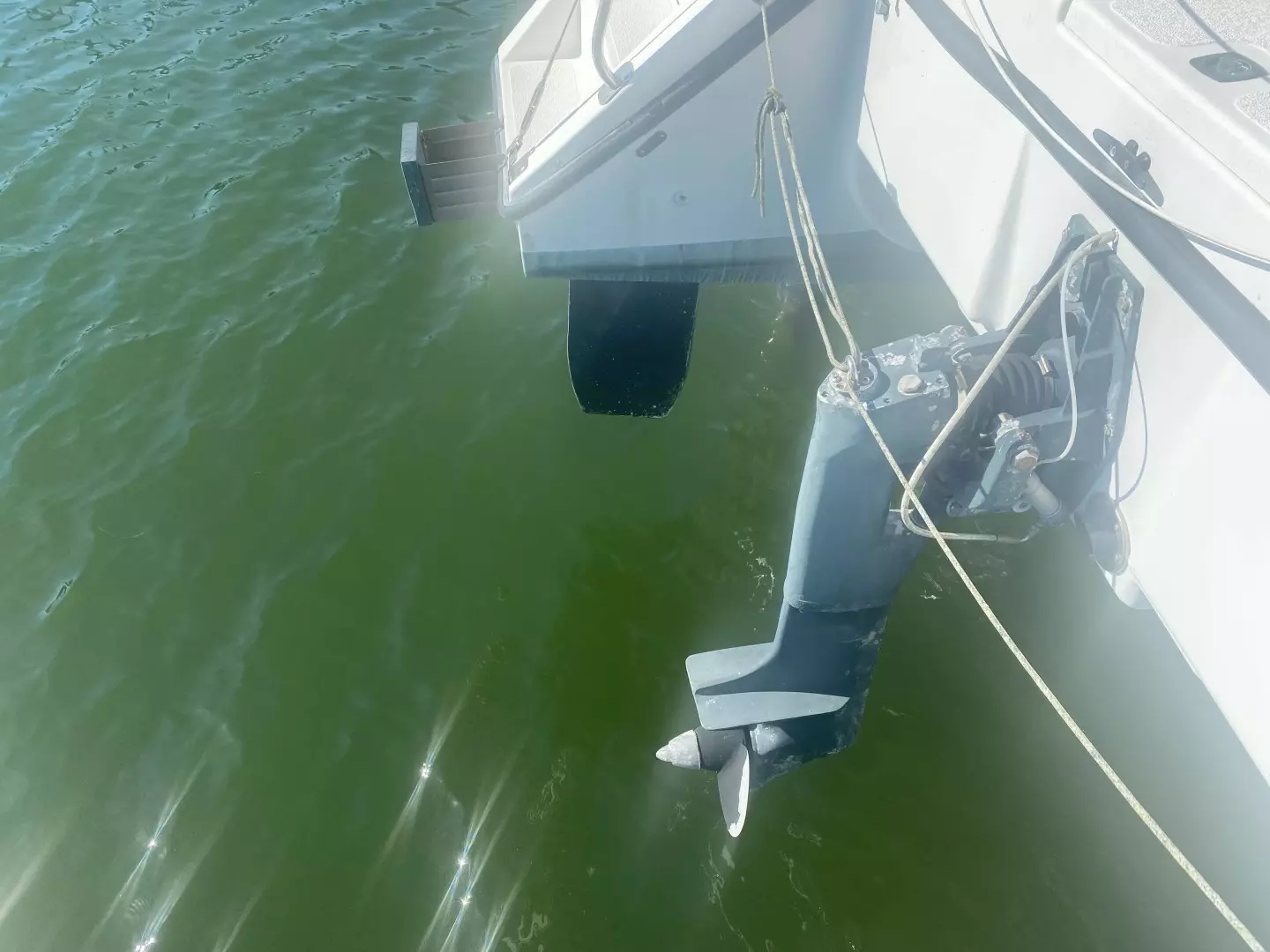 - Engine: Westerbeke diesel with inboard/outboard leg that raises for sailing