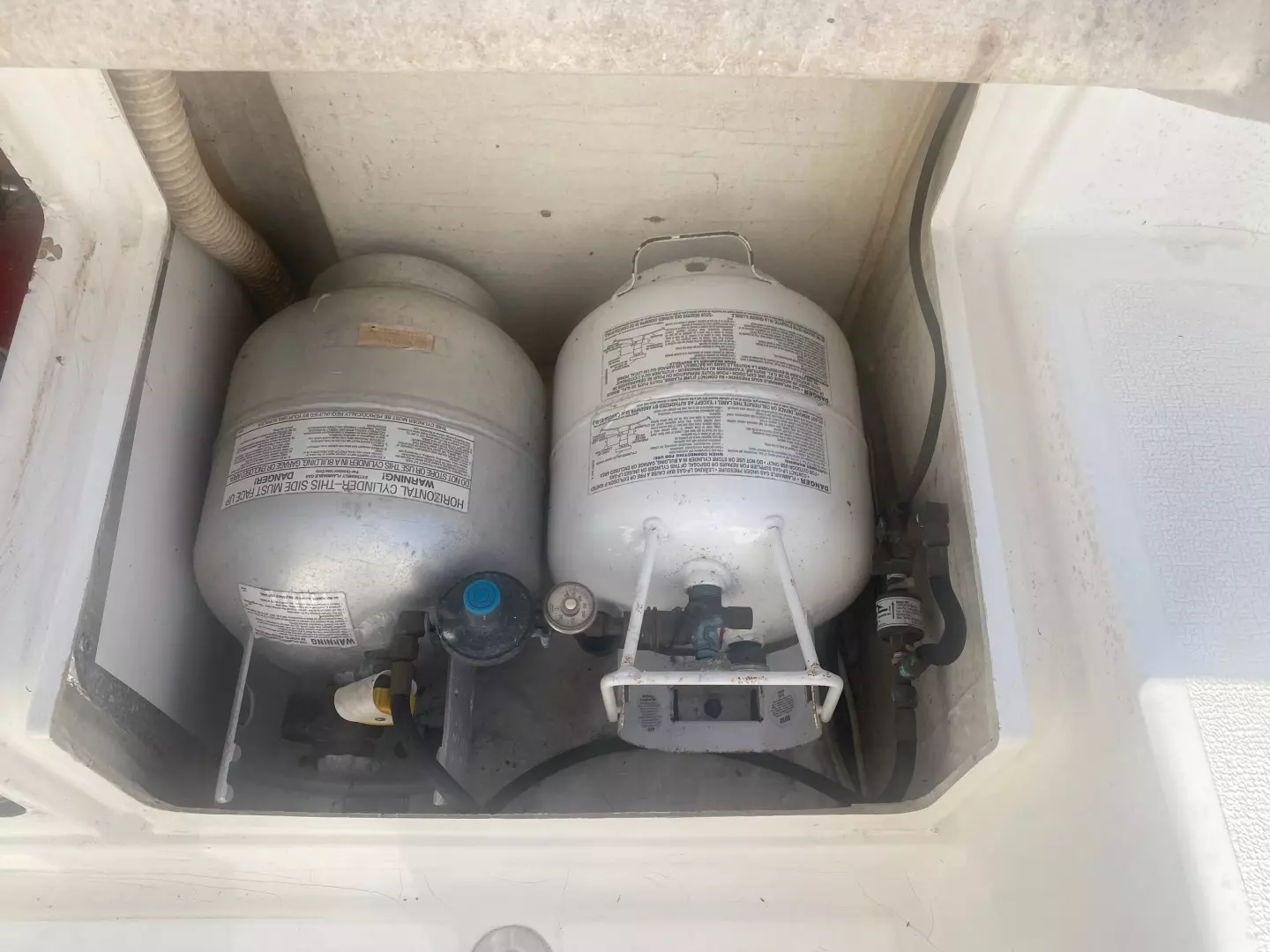 | Propane refrigerator, stove, and on-demand hot water |