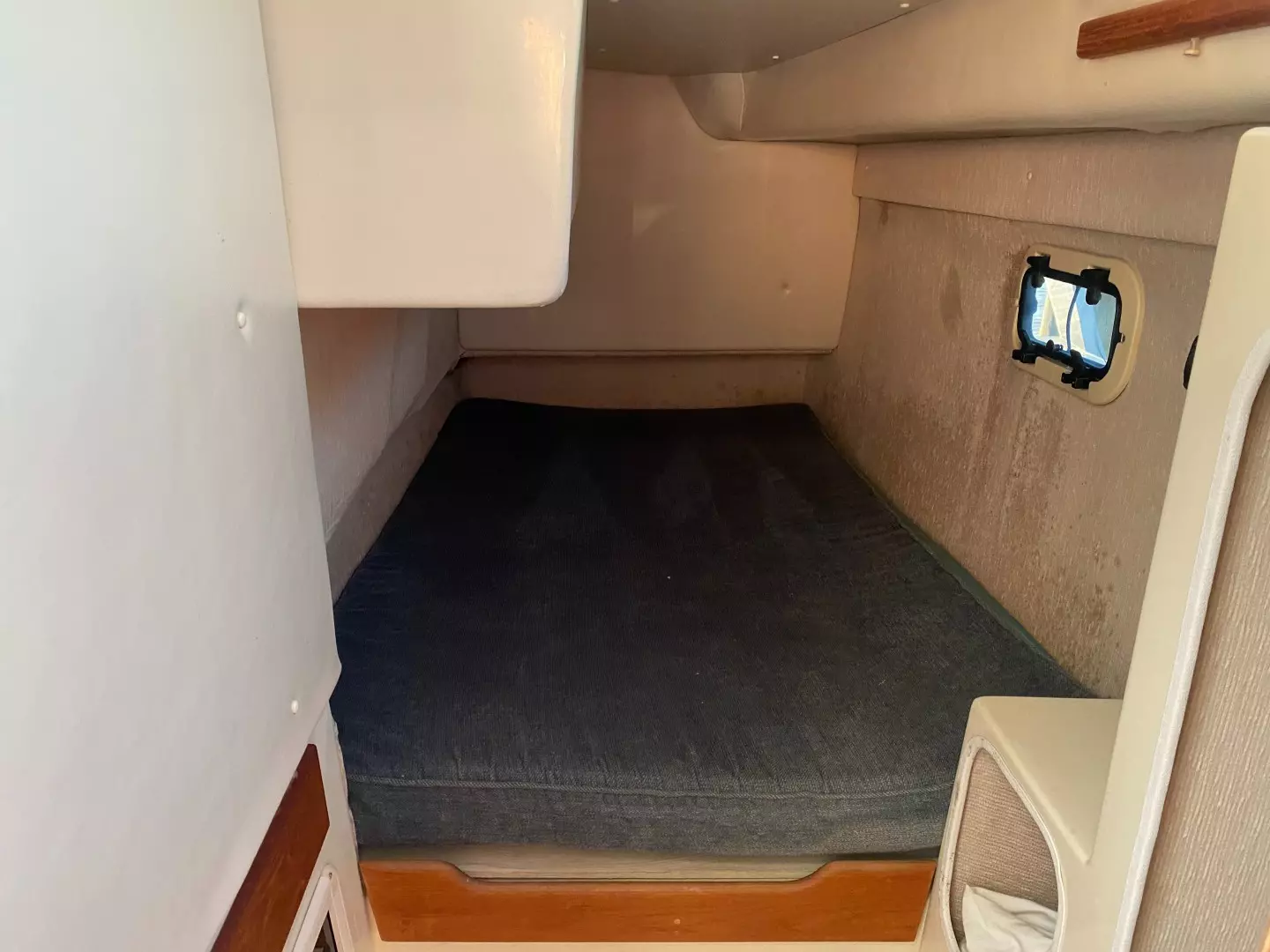 | Queen berth in forward cabin |