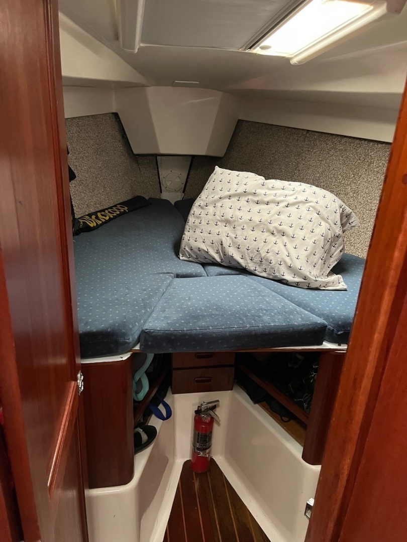 Spacious Aft Cabin and V-berth. Both with doors. Ample storage and standing headroom to change clothes in privacy. Aft Cabin has 3 opening ports.