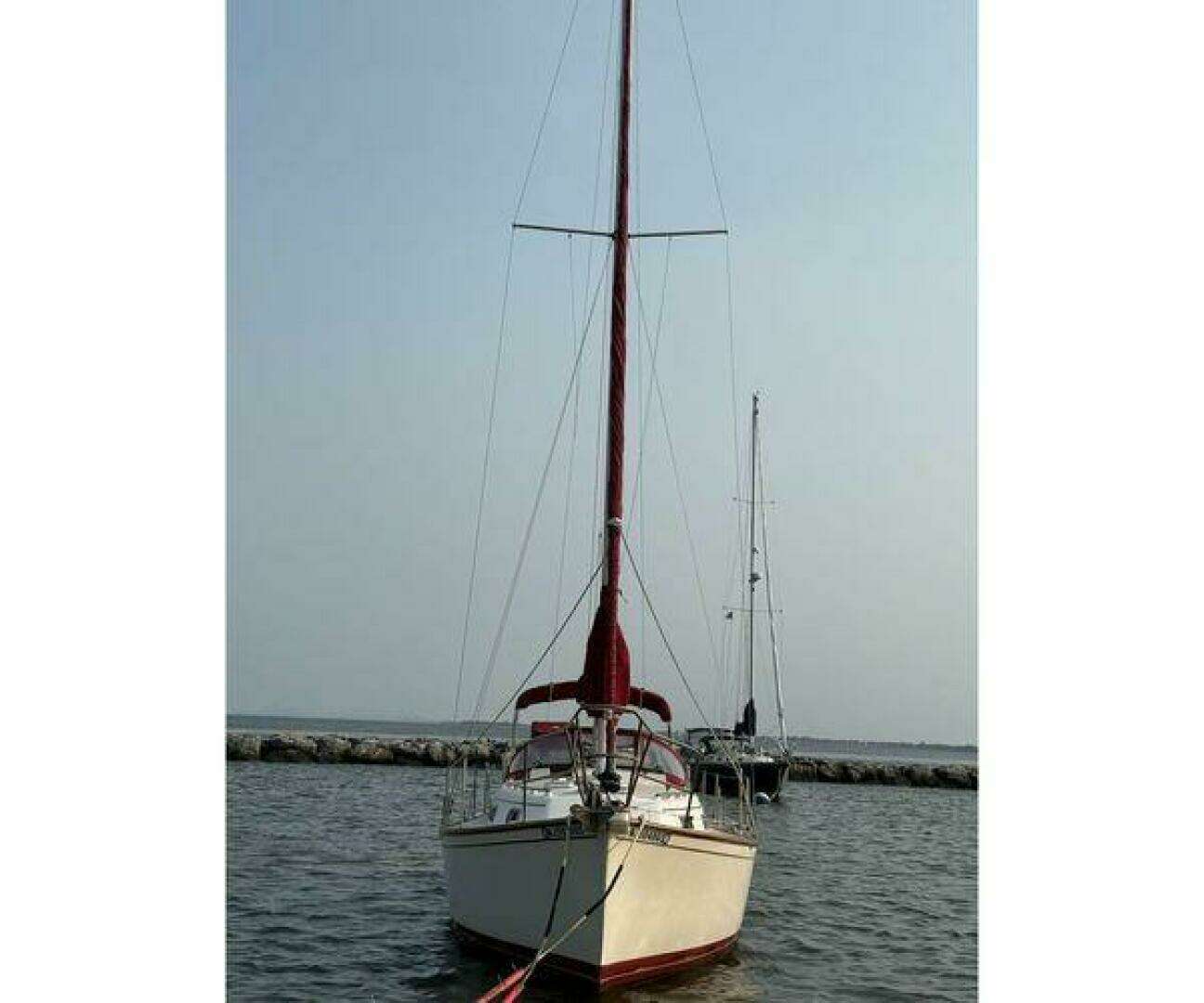 The cockpit is very roomy and can accommodate the entire crew in comfort with dodger & bimini. Below starting forward is a ample V-berth with storage and filler cushion. The well appointed head with shower is on the starboard side aft of the V-berth. The roomy main salon has a very large bi-fold table that folds down from the main bulkhead. There is also storage behind the table for glasses and wine bottles. The starboard settee pulls out into a double berth and port-side settee will sleep one.