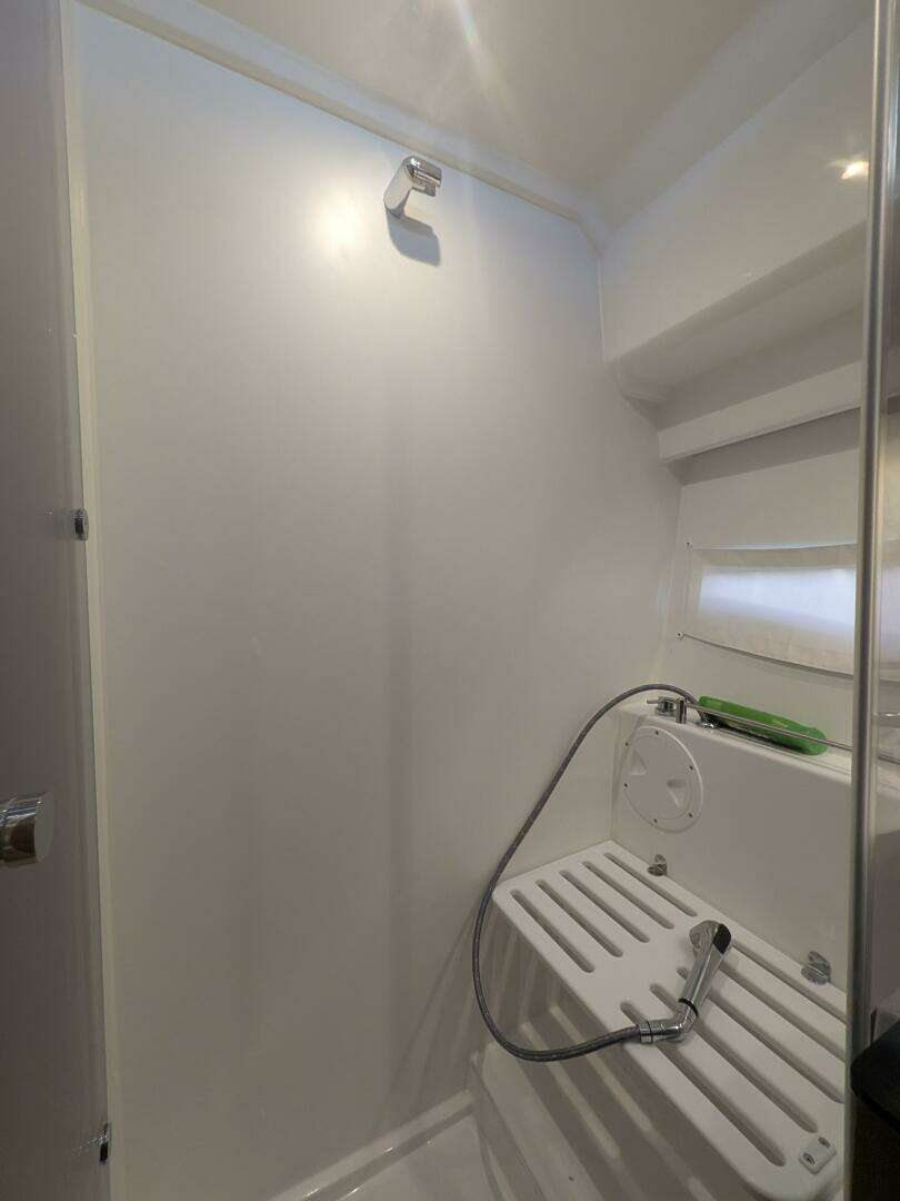 The expansive salon converts quickly into an additional double berth, and the functional galley—complete with cooktop, sink, and countertop—makes onboard dining a pleasure. For added comfort, the entire boat from wheelbase to cabins is fitted with carpet.