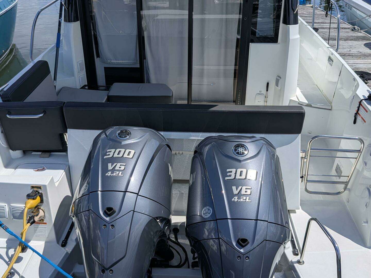 Twin Yamaha 300 HP outboards provide impressive reliability and handling, with top speeds reaching 37 knots. Responsive at any speed, she features a bow thruster for effortless docking and maneuvering in tight quarters, and Zipwake automatic trim tabs to get you on plane faster for a more efficient, comfortable ride.