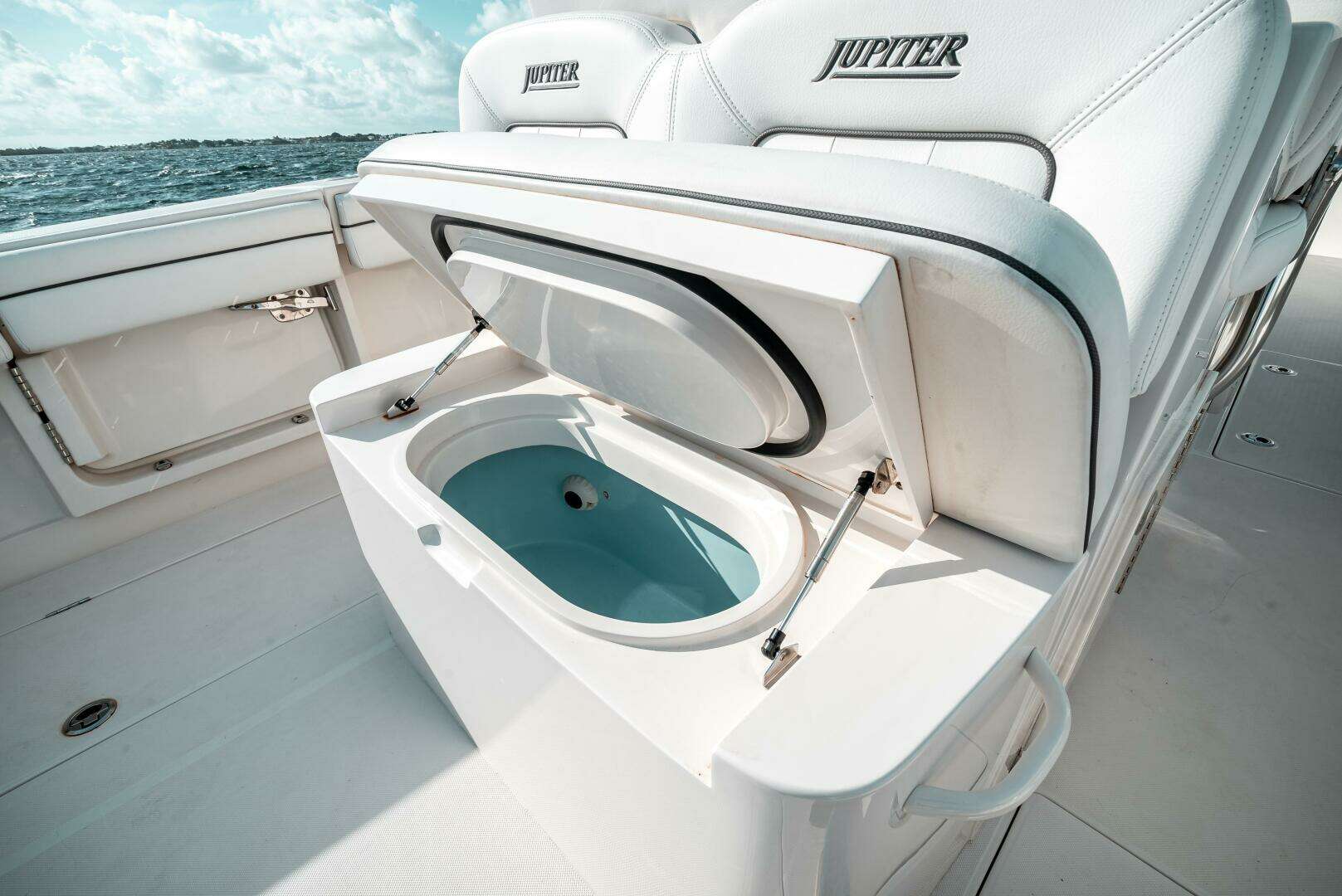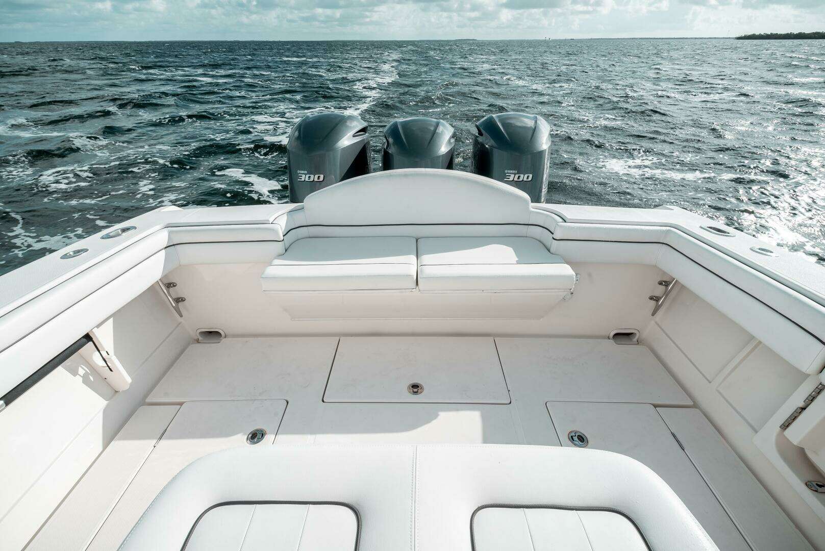 - Custom Transom Seating; Aft-Facing Mezzanine with Livewell