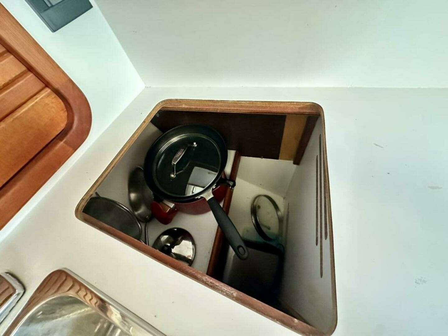 - Toshiba LCD TV (on a swivel to watch from forward cabin or L-shaped settee)