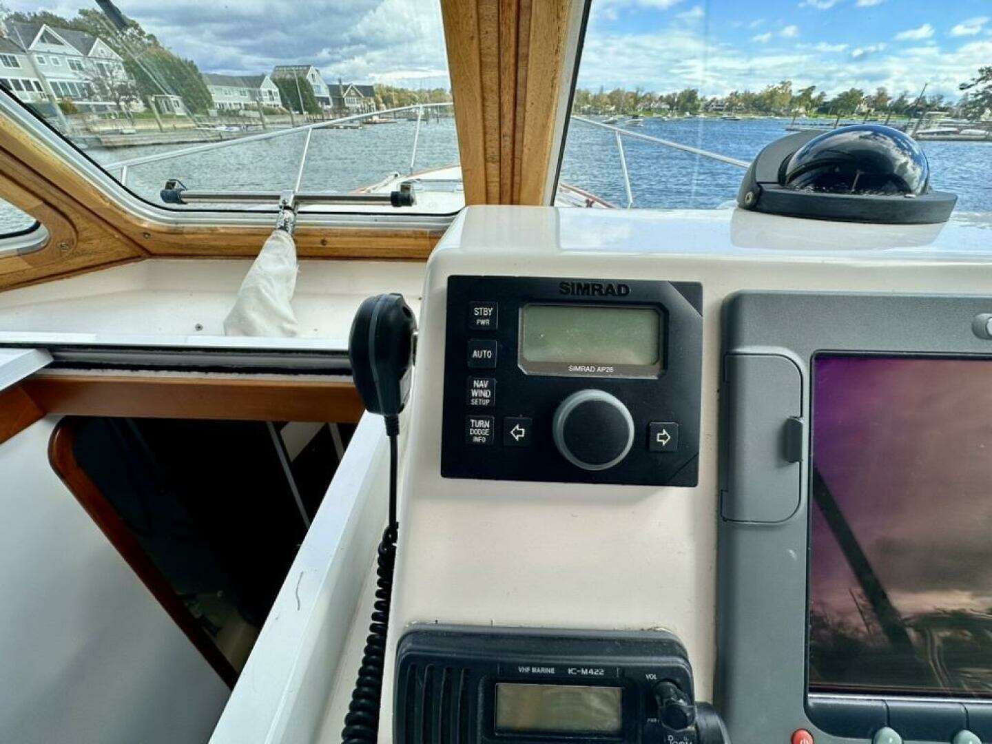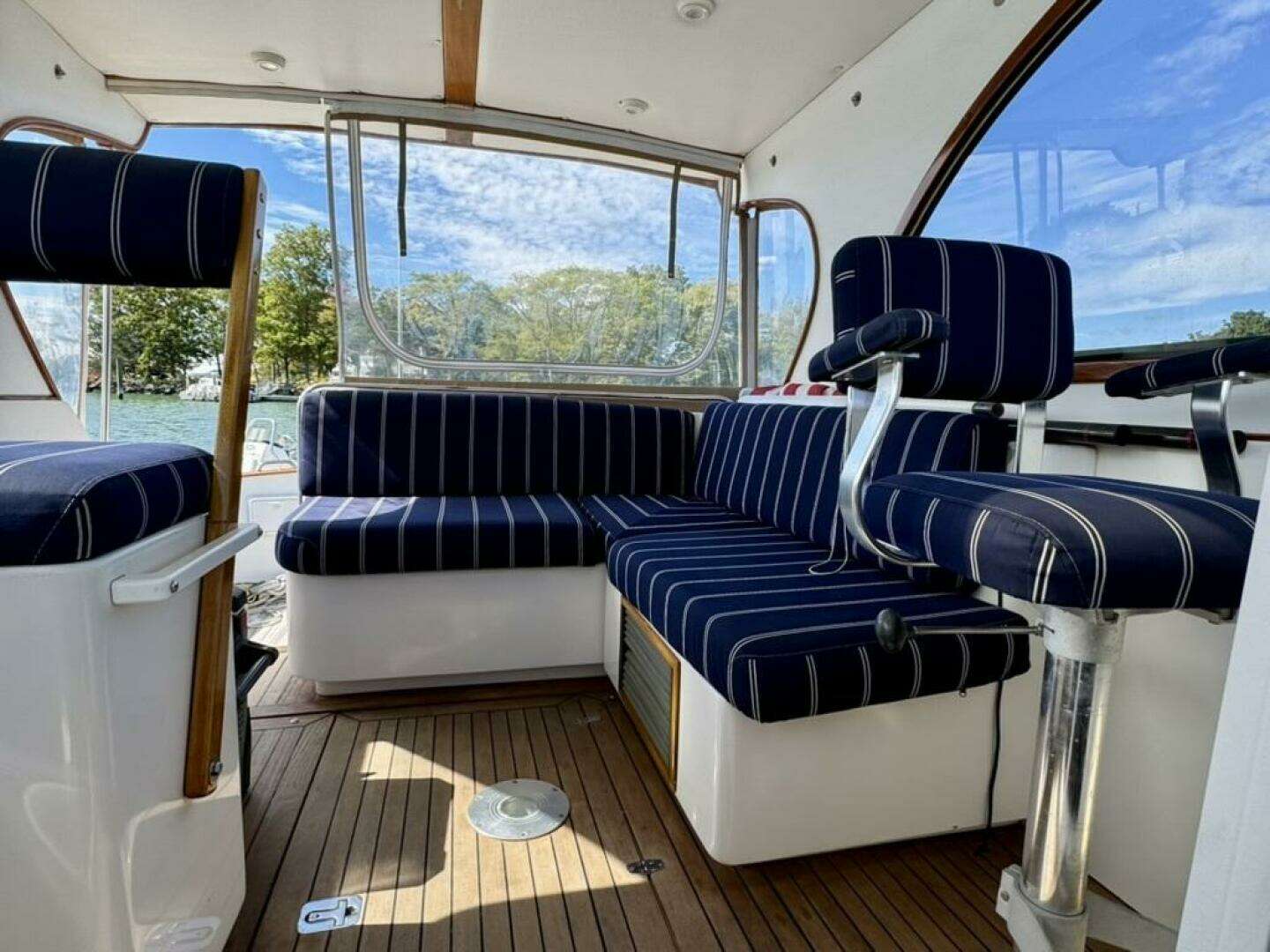 The pilothouse on BELLE is exactly what you need for a comfortable family cruiser. All upholstery re-done in 2023, the space is comfortable, attractive and accommodating.