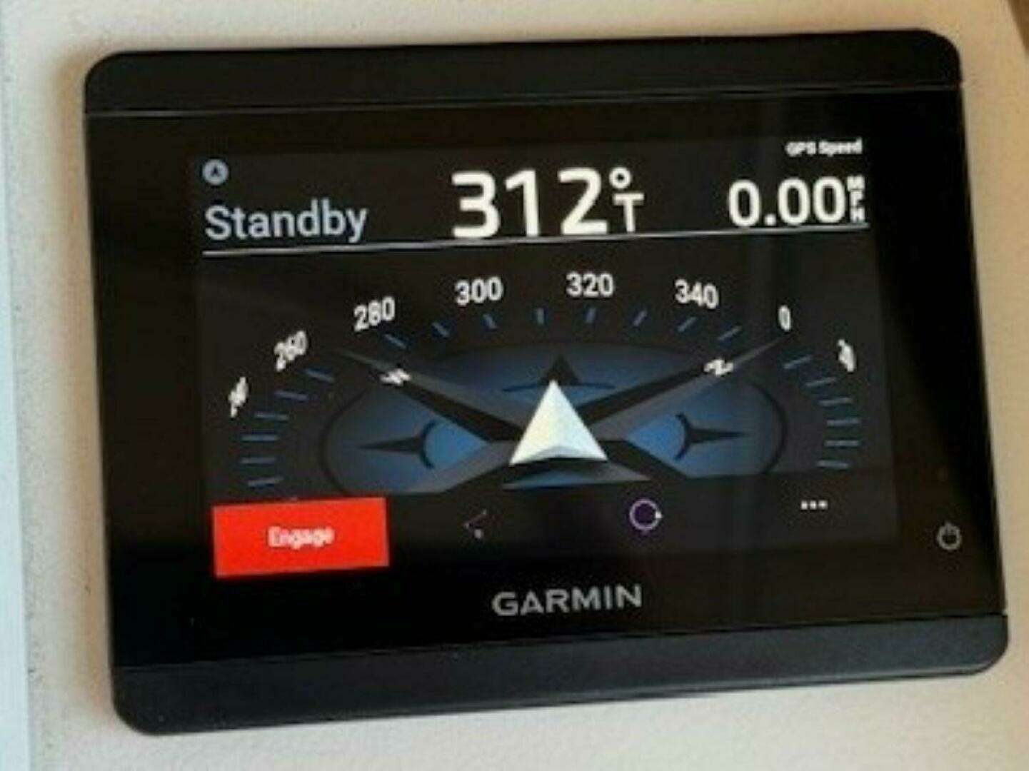 Navigation and control systems have been thoughtfully updated. The helm is equipped with a Garmin GPSMAP 943xsv chartplotter, a Garmin GHC 50 autopilot installed in 2024, and an Icom IC-M506 VHF radio paired with a Shakespeare Galaxy VHF/AIS antenna. A 4-inch Aquameter compass, VDO tachometer, and a new instrument cluster installed in 2024 provide clear engine and system data at a glance.