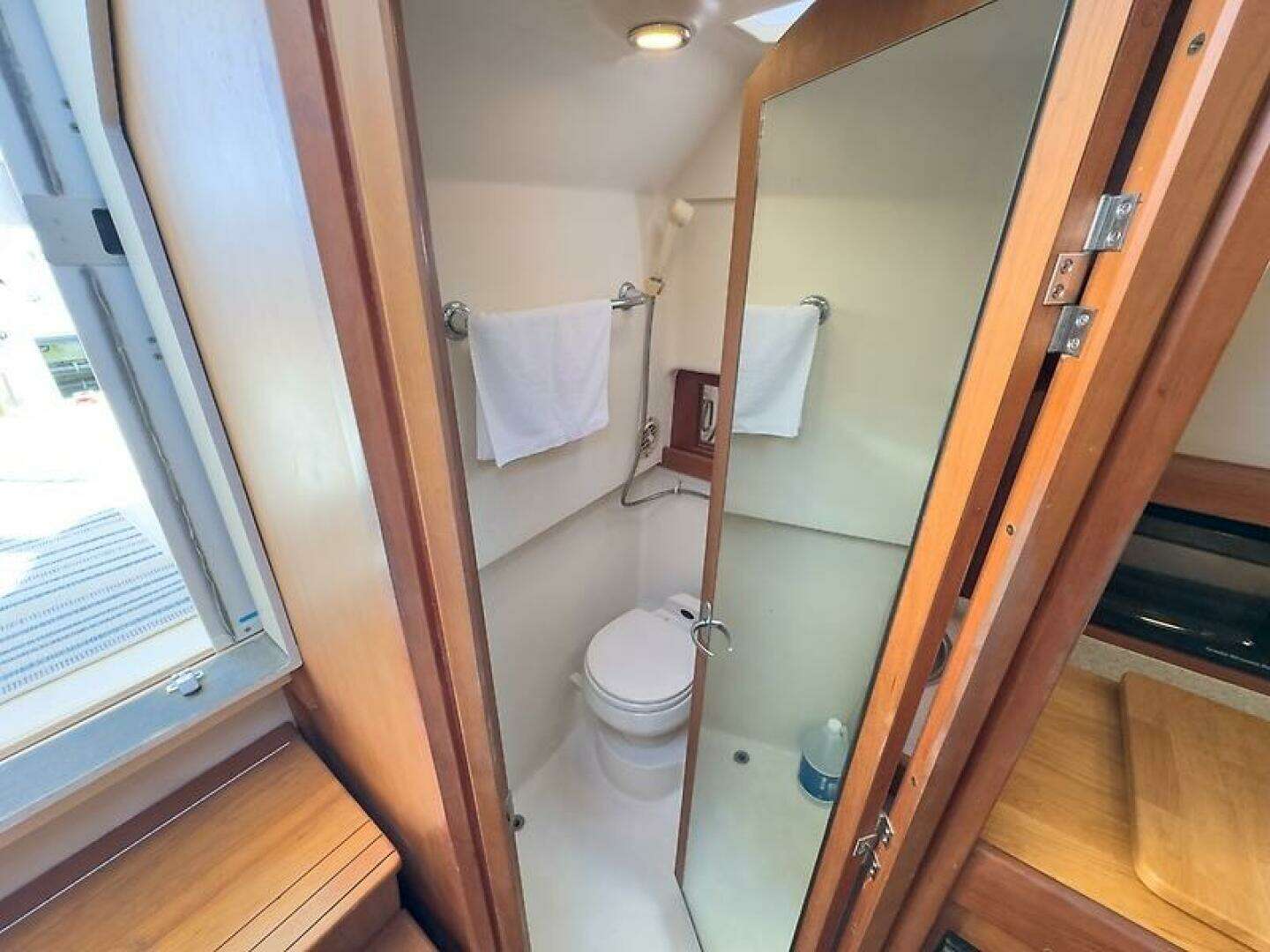 Moving forward through the lockable salon door gives you access to the salon, head, and stateroom.