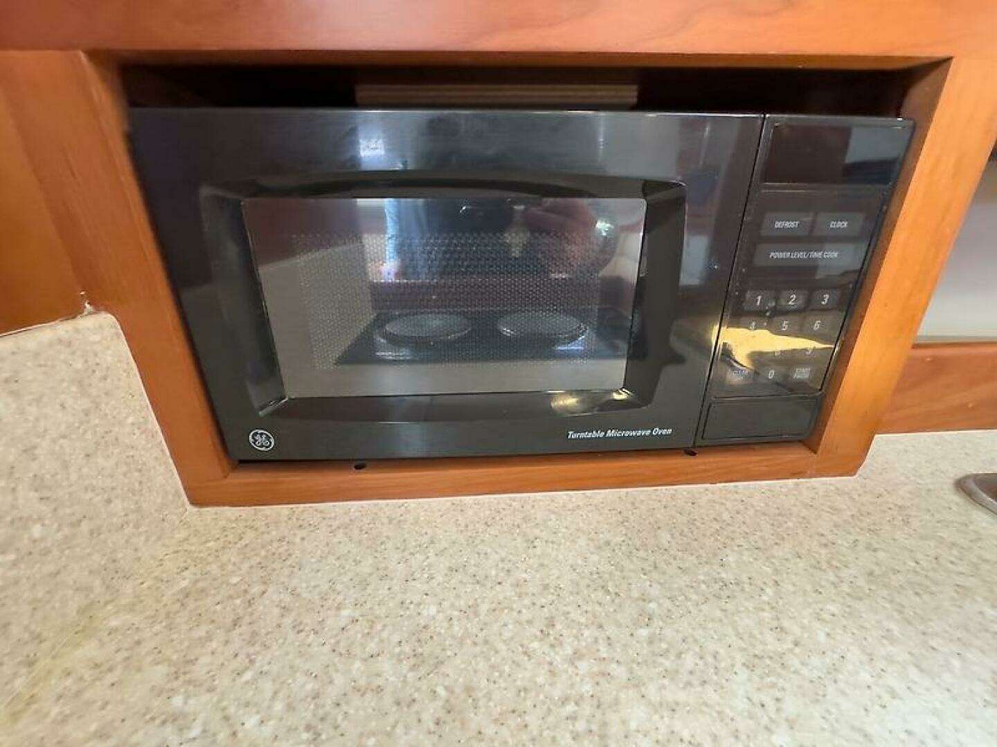 The Mainship Pilot 34 has the seakeeping abilities of the lobster boats it has descended from. It has a steep plumb bow and a gentle rise of the sheer; both of these qualities give the Pilot 34 the ability to cut through head seas, while the rounded forward hull sections provide a soft entry. Flatter sections aft increase lift for speed and economy, and the deep full keel with a complete sand shoe gives stability and protection from grounding. In the cockpit, the Pilot 34 has double-wide helm and companion seats flanking the large hydraulically-assisted engine access hatch. The side lounges can double as berths with the removable backrests. A tilt-up console means easy access to electronics and wiring, and there is a built-in insulated cooler box as well as a standard transom door. Below, the cabin has a large head complete with Corian covered vanity, lots of storage, a shower, and even a VacuFlush head. The teak-trimmed galley offers plenty of storage, ample Corian counter space, a microwave, a dual cooktop, and a refrigerator and freezer. There is even a slide-out pantry for convenience. The large dinette easily converts to a double berth and includes plenty of storage. A color TV - VCR is standard and is easily viewed from the private forward stateroom, galley or dinette on its swivel system. Forward in the stateroom, hanging lockers and drawers will swallow gear for the weekend or a month. Extra-long innerspring berths guarantee a great night's sleep.