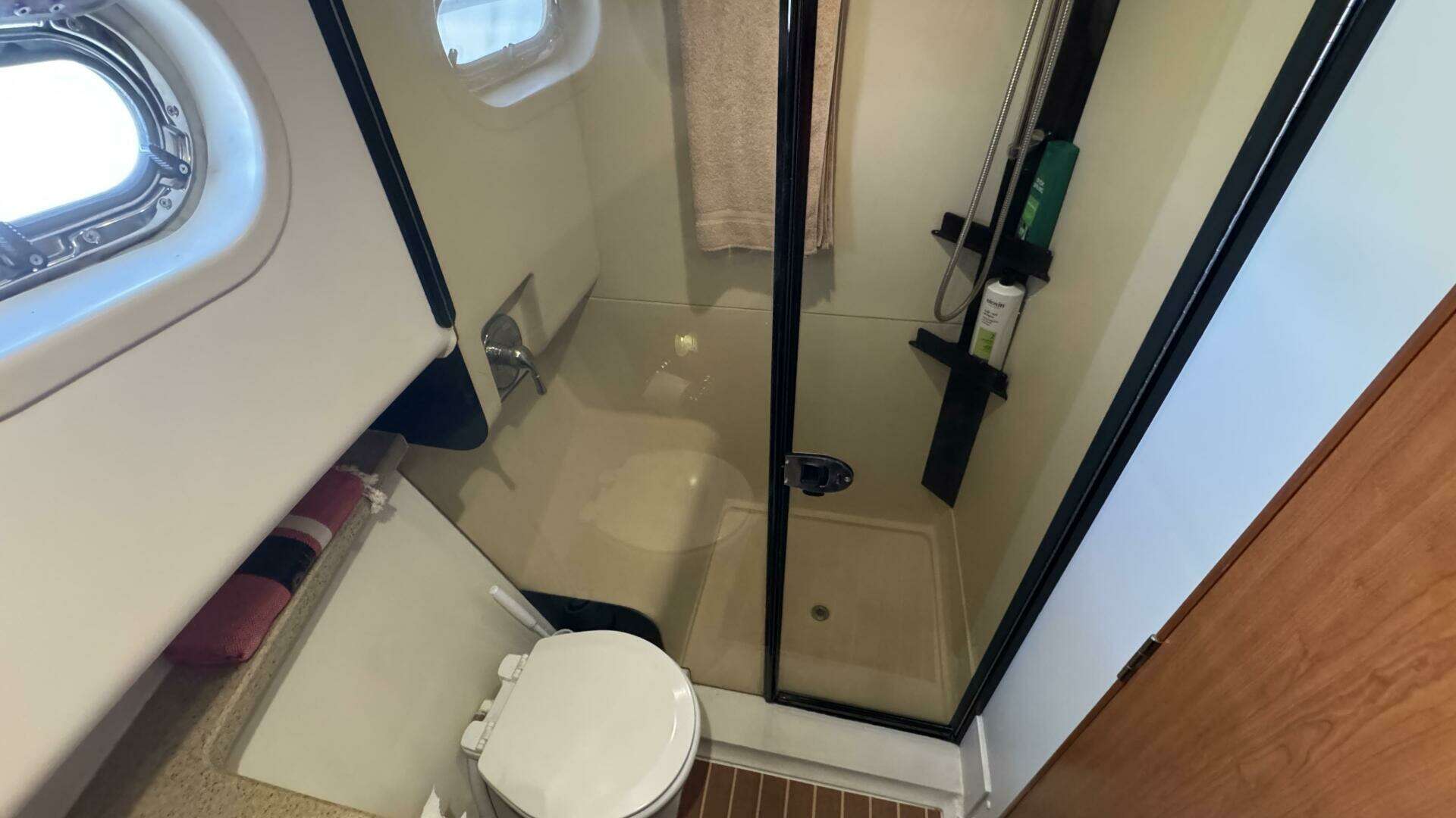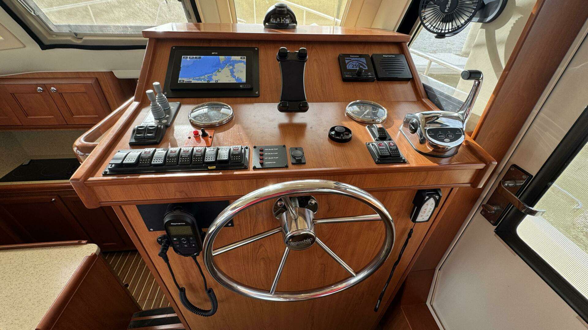 - Large Starboard access door at the lower helm for line handling