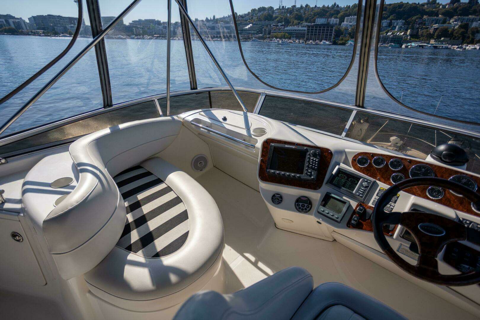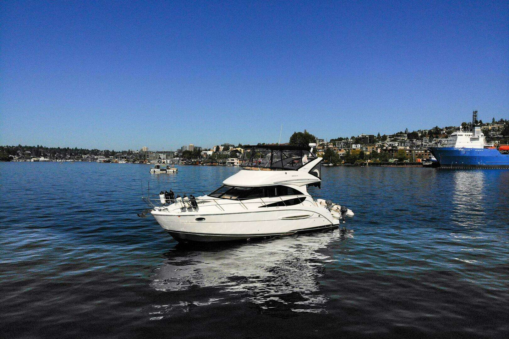 2008 Meridian 341 Sedan – Joystick Handling + South Lake Union Slip The 2008 Meridian 341 Sedan offers the perfect balance of comfort, performance, and usability. With a spacious flybridge, bright interior, and thoughtful two-stateroom layout, this yacht feels much larger than her size suggests.