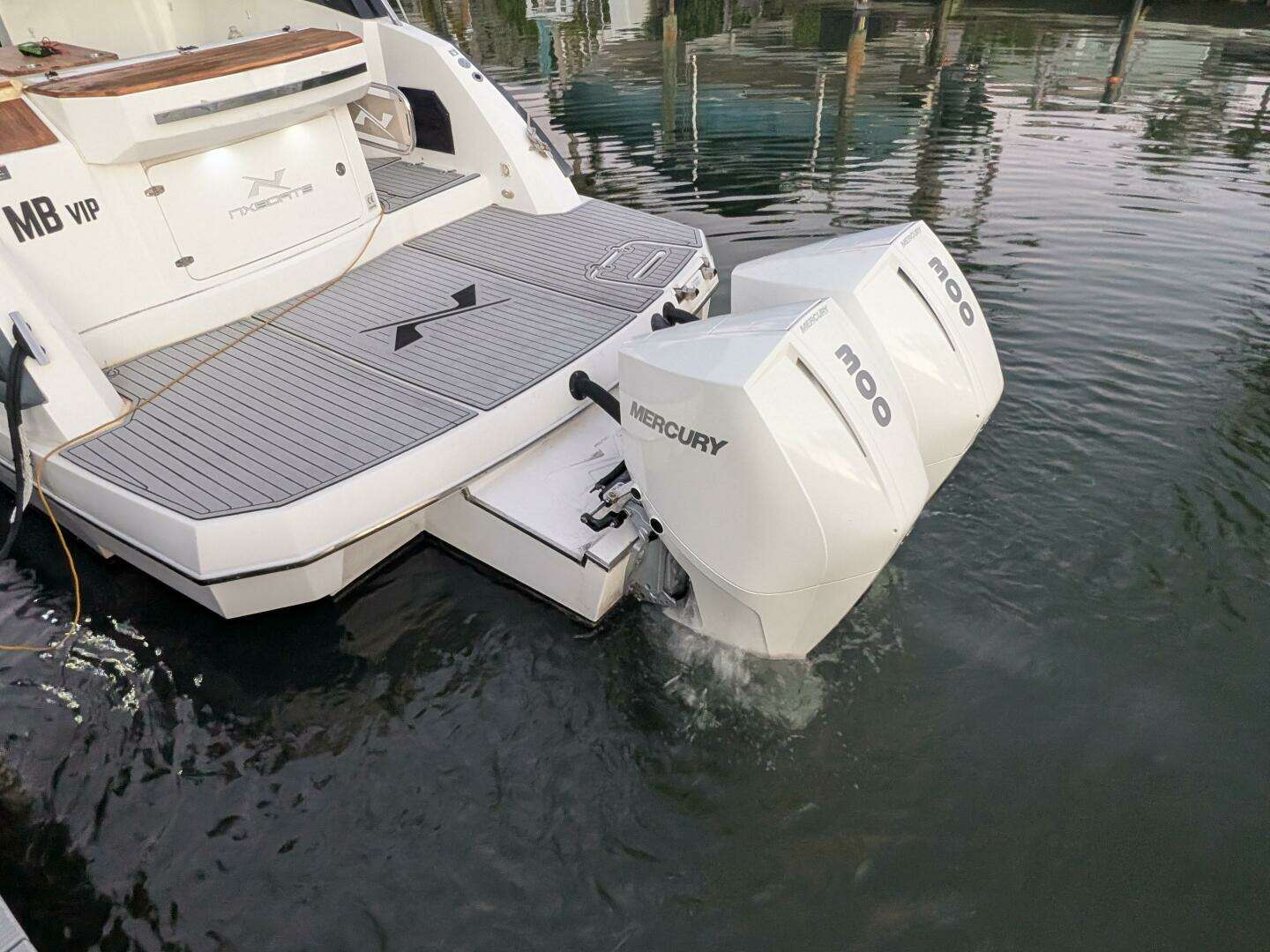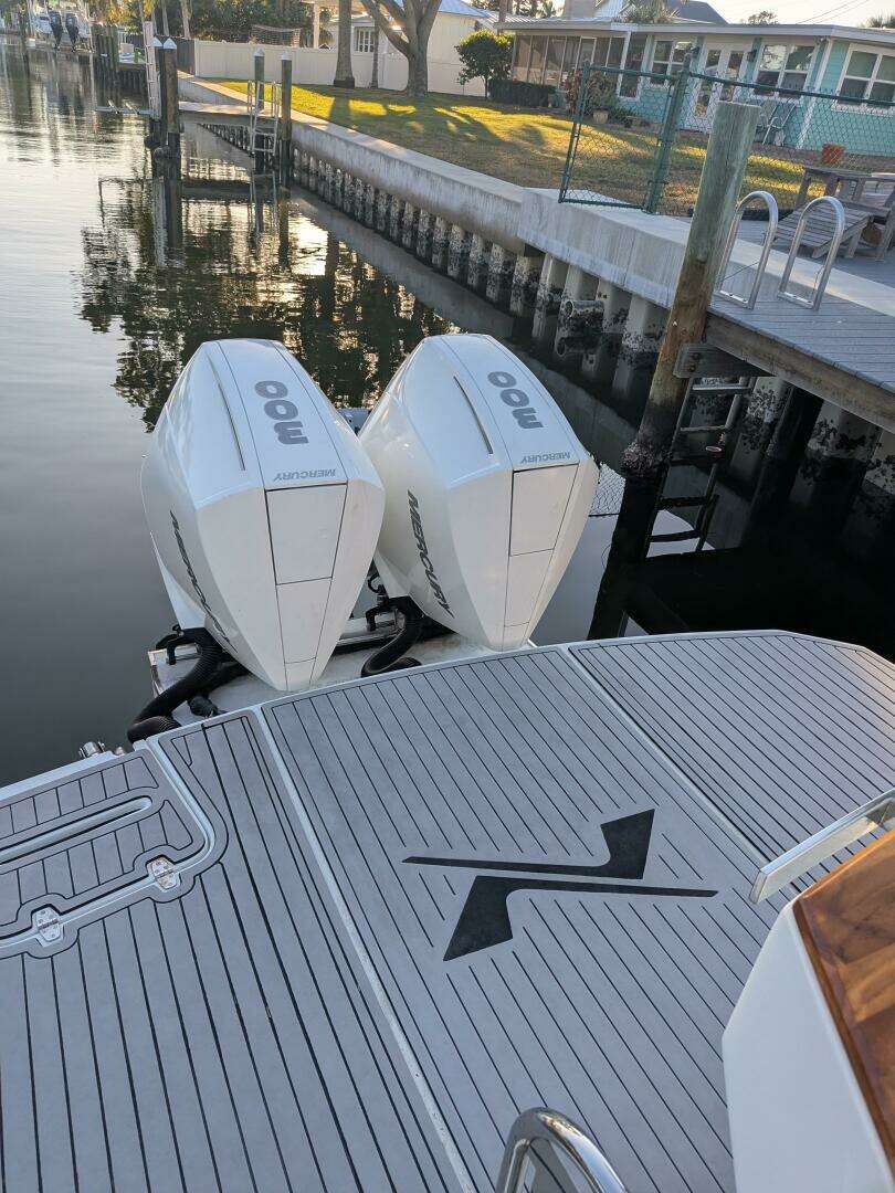 This 2023 NX 340 comes with full factory warranties still active. The hull warranty is valid until March 2028, and the twin Mercury 300 V8 outboards are covered by the Platinum Protection Plan—the highest level offered—through 2027.
