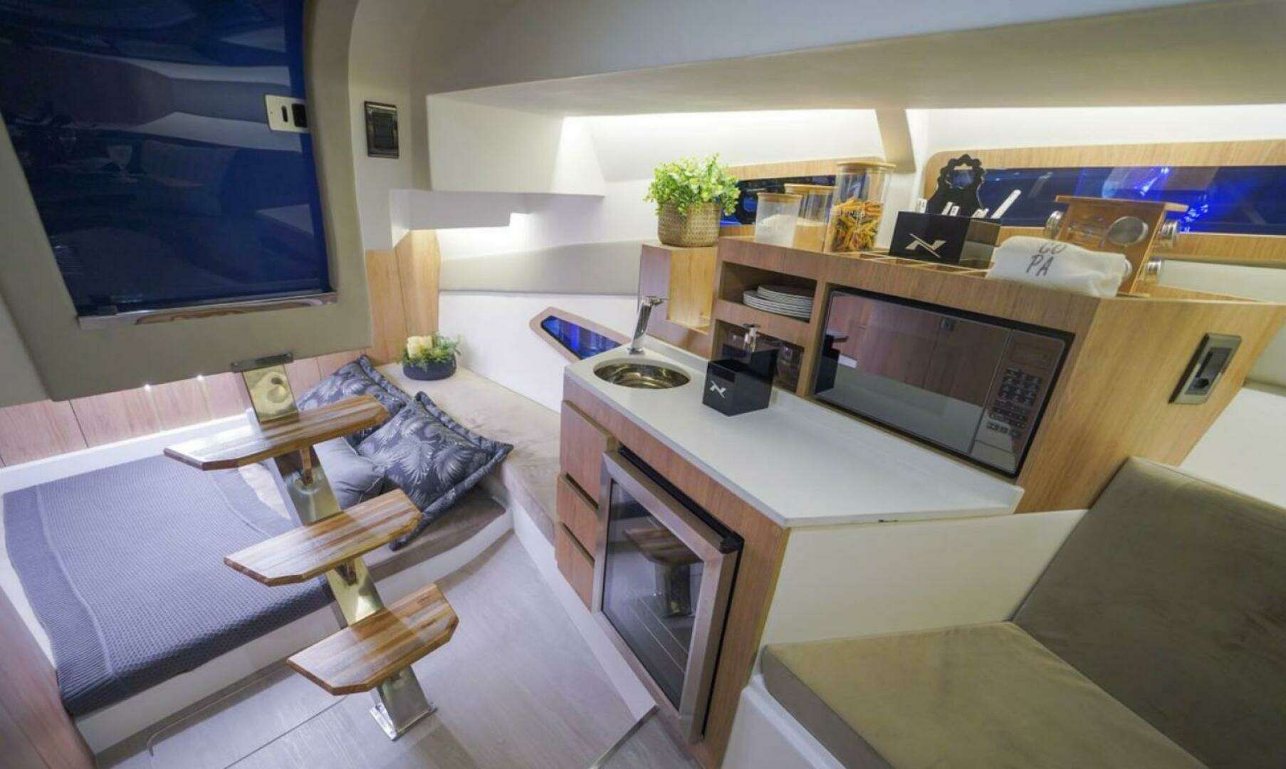 The boat is equipped with a diesel Onan 5.5 kW generator, cabin air conditioning, an inverter, and a solar panel charging system, giving you quiet, efficient, and independent operation on the water. It performs well in both shallow and deep areas, making it an excellent option for coastal cruising and island trips.