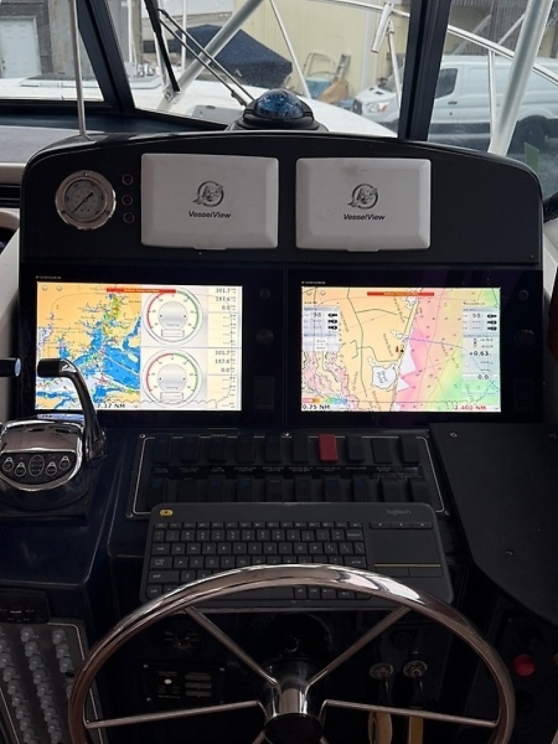 Repowered in 2014 with twin Cummins QSB 380 diesel engines, she boasts remarkably low usage at just 640 hours total. These modern Cummins diesels deliver strong cruising speeds of 25 knots and top of 30 knots while offering excellent fuel efficiency and torque for handling rough offshore conditions.