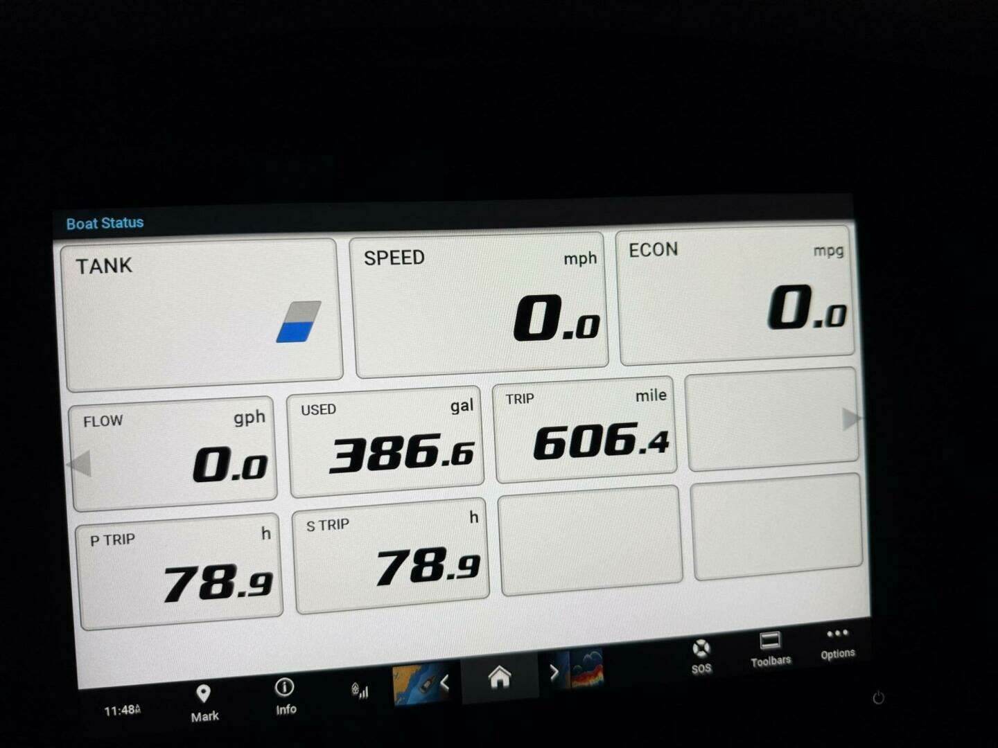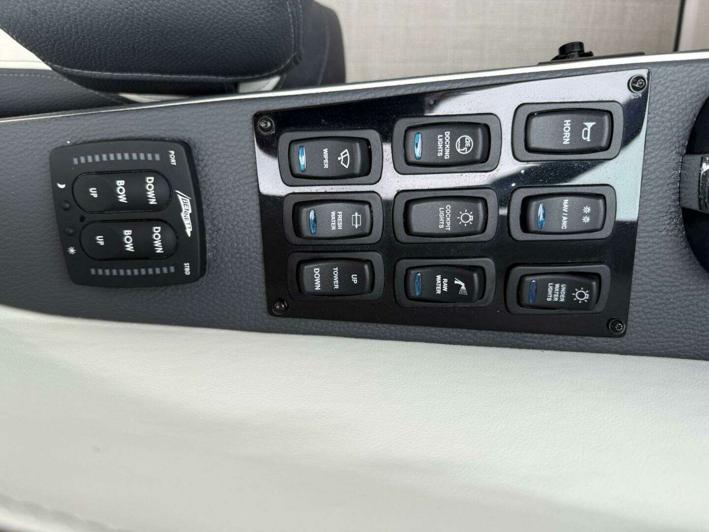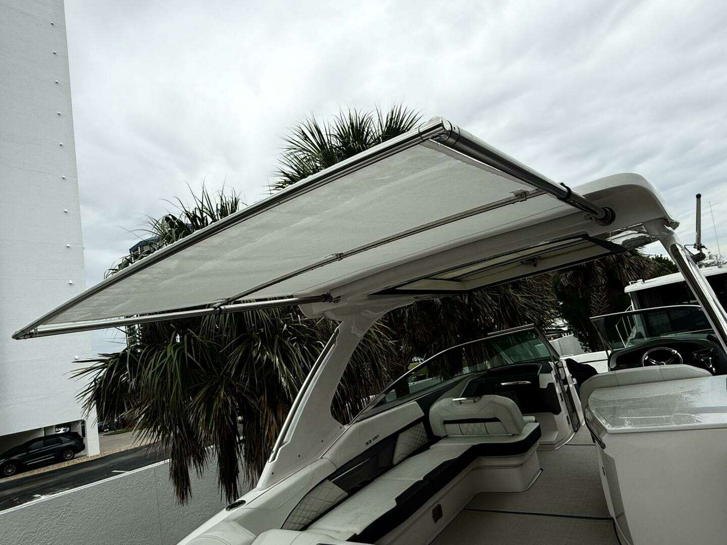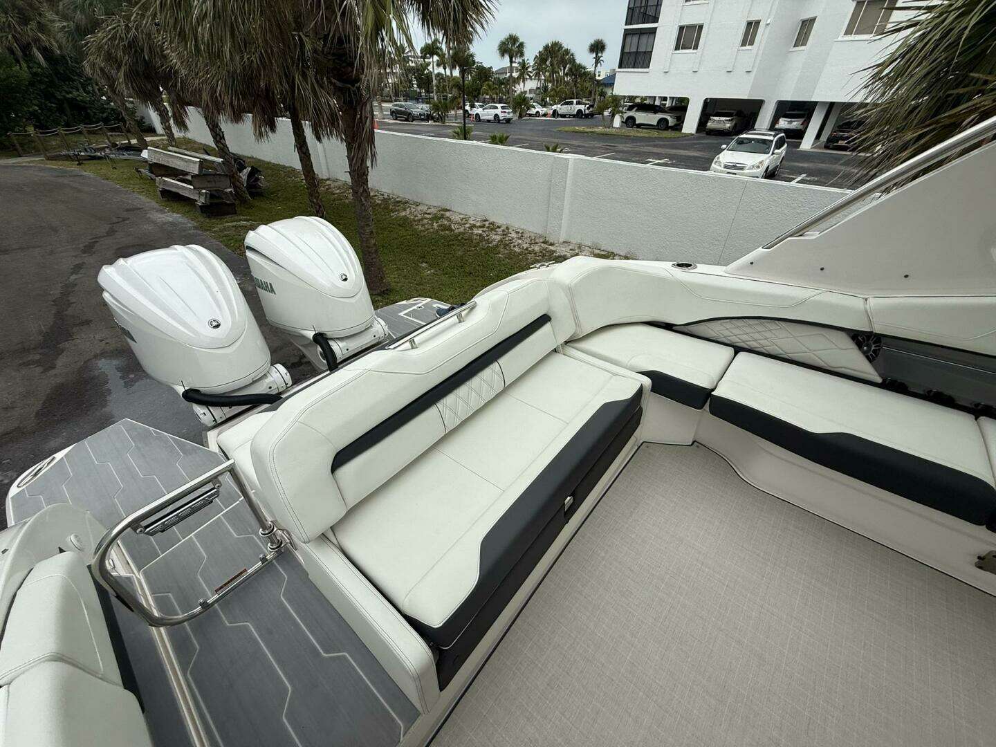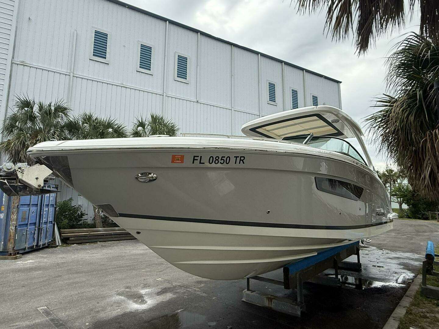 | Notable Upgrades: Windshield Wiper – Starboard Hard Top with Sunroof Toilet: Electric with Pump Out Fittings Bow & Cockpit Covers Aft Cockpit Electric Sureshade For Hard Top Premium Package Stainless Steel Upgrade Package Transom Door Garmin VHF Radio Garmin 1243XSV + B60 Transducer Swim Platform Cleats Fender Clips Cockpit Refrigerator Power Package Port Light For Cabin Anchor Windlass - Rope & Chain Cruise Package Bow Thruster SeaDek Swim Platform Technology Package Indicators for Trim Tabs Twin Yamaha F300NSB2 |