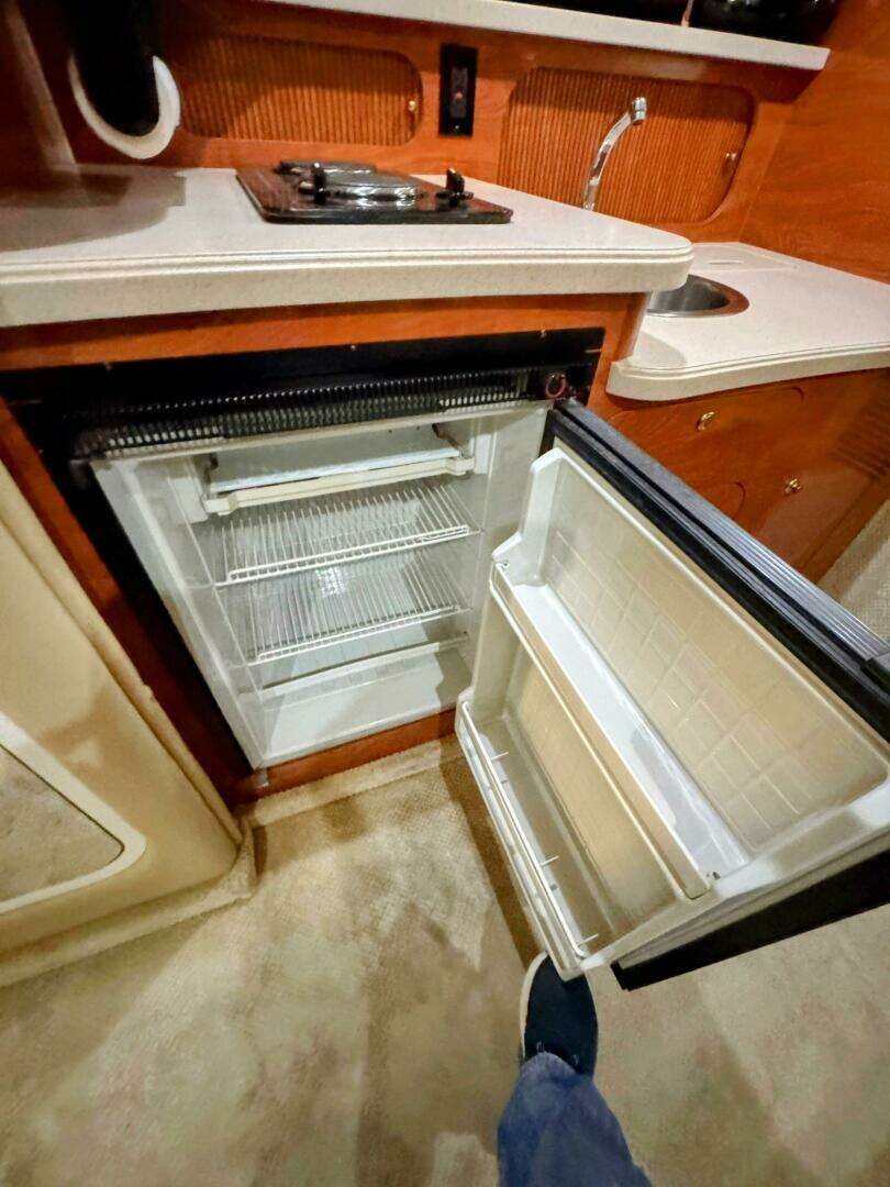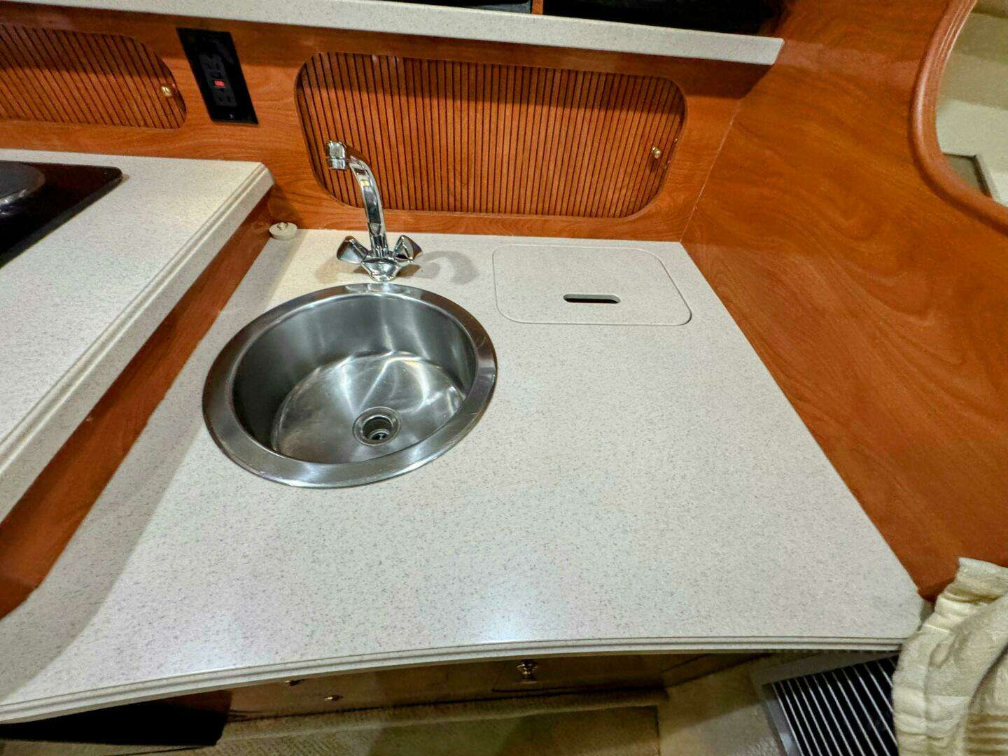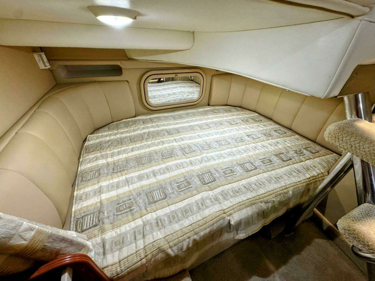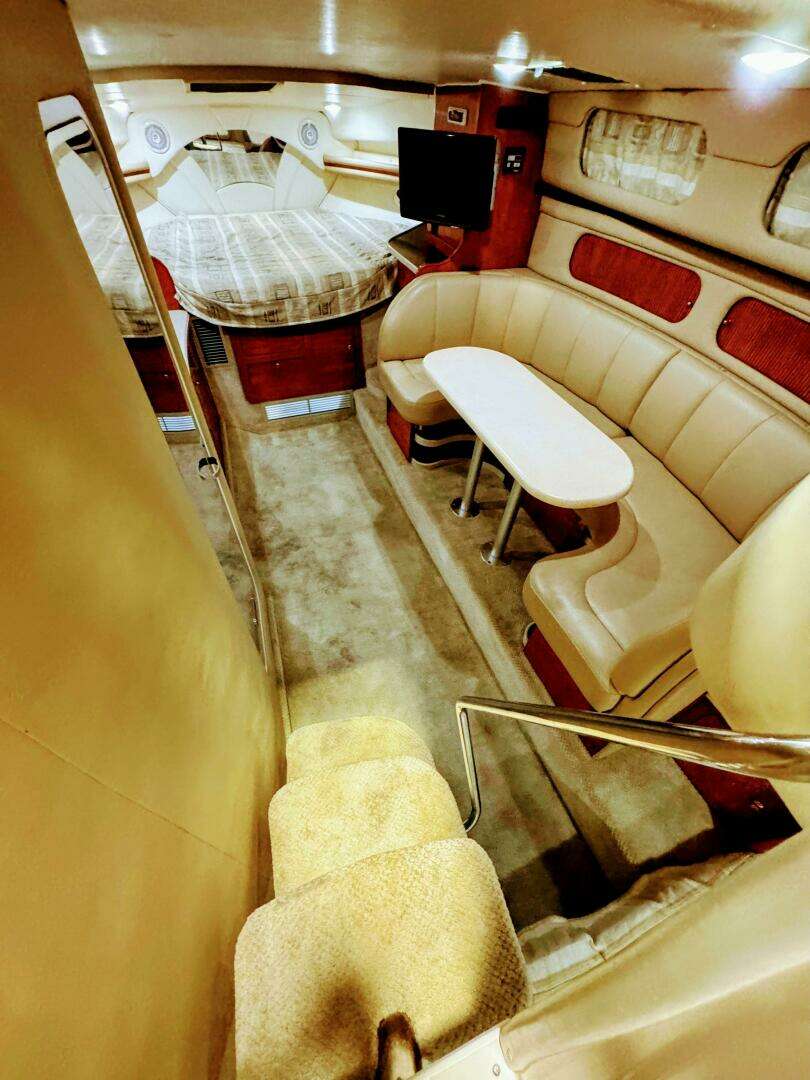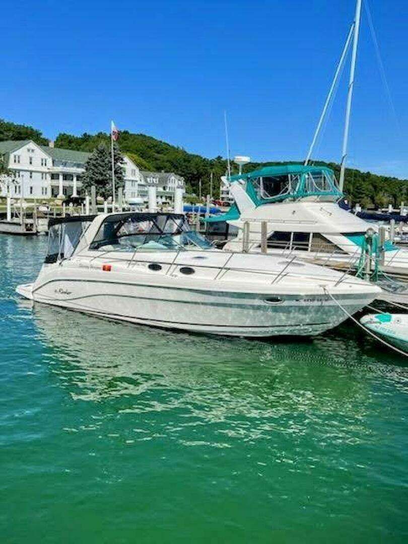 “Same owner since 2004 and shes 100% fresh water” “Heated storage included” We are excited to bring to market Sharing Horizons Shes a 2002 Rinker Fiesta Vee 342, a stunning cruiser that combines elegance and performance. With an overall length of 37 feet, this vessel features a robust fiberglass hull designed in a deep vee shape, ensuring stability and smooth navigation on the water. This Rinker has been in freshwater since day one, the current owner of four years is the second owner of the vessel. Powered by twin Mercury 6.2L MPI engines, each delivering an impressive 320 horsepower, this boat is equipped for thrilling adventures. The boat systems are powered by a Kohler 5.0 kW gas generator. The interior offers comfortable accommodations with two berths and a well-appointed head with full shower, making it perfect for extended trips. The cabin also features air conditioning, heat, refrigerator, microwave, cook top, and flat screen tv. The cockpit is spacious and includes a wet bar with built in blender, Ice maker and refrigerator. Whether you're cruising with family or entertaining friends, the Rinker Fiesta Vee 342 promises an unforgettable experience on the water, blending style, comfort and power. She’s very clean and has had great care over the years. She also has her checklist turned into the marina for her winter maintenance schedule she will be ready for you in the spring. Both stern drives, gimbal bearings, and couplers were replaced in 2006-2007. The port side engine had a valve job in 2010, and the starboard engine was replaced in 2017 complete with new plugs and wires on both engines. Other smaller items were replaced including ice maker, heat/AC control, and more recently, holding tank monitor. Canvas, isinglass, snaps, and zippers have been repaired and replaced as needed. Winter maintenance is routinely performed including oil and impeller changes, bottom paint, and overall inspections. The boat is waxed and kept clean inside and out. Carpet for cockpit is included and like new, removed in 2004 when purchased. Canvas Cockpit cover as well included Rear cockpit table included Cushions for dinette to convert to sleeper included.
