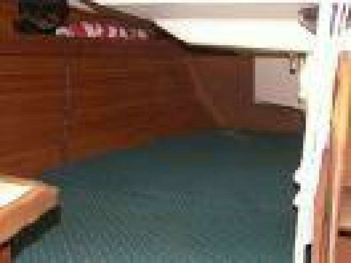 Sabre construction is unique in this era of modern production cruisers. Her wing keel is lead--not iron. She is built the old fashioned "sticks" method, with a hull joined to a deck with an inner turning flange and with all interior components built up by hand on encapsulated stringers, and wood cabinetry with all bulkheads glassed in to the hull. No "pans" are used in this vessel. This makes for a light and strong hull/deck unit with no unnecessary weight used. Sabre construction is more akin to methods used by high end custom builders than to production sailboat manufacturers. The Main Salon is amidship and features a single settee to starboard, a pull-out convertible double settee to port and a bulkhead mounted teak table. Outboard of both settees are large storage lockers and bookshelves. Water tanks and additional storage are beneath. The Navigation Station is aft to starboard. The Galley is opposite to port. The entire interior is finished in oiled teak with teak and holly cabin sole and newer aqua green upholstery. Excellent ventilation is provided throughout with stainless steel opening ports(6), chromed dorade vents (4) and overhead hatches (2). All opening ports, hatches and companionway have screens. Headroom is 6'3" and there is an AM/FM/CD stereo with 2 speakers in the salon (and 2 in the cockpit with speaker selector/fader control). In 1992, Sabre enlarged the storage areas behind the settees and were able to conceal the robust stainless steel main upper shroud chainplates. With the opening of a storage locker, they can be easily inspected.