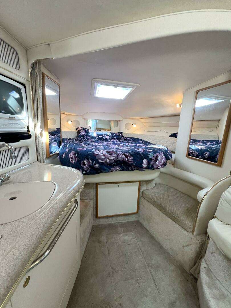 - Forward V-berth with privacy curtain