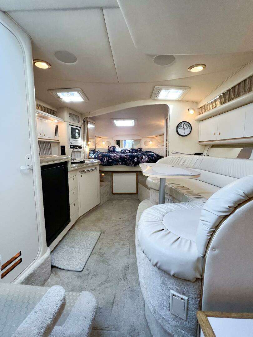 Step aboard KNOT AT WORK — a beautifully kept 2000 Sea Ray 340 Sundancer that blends sport performance with the comfort of a floating condo. This model became an icon for Sea Ray’s “Express Cruiser” series — praised by Boating Magazine and Power & Motoryacht for her sleek lines, superb layout, and f