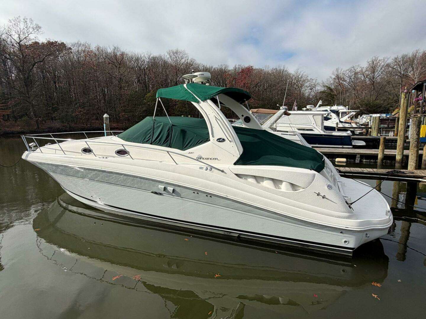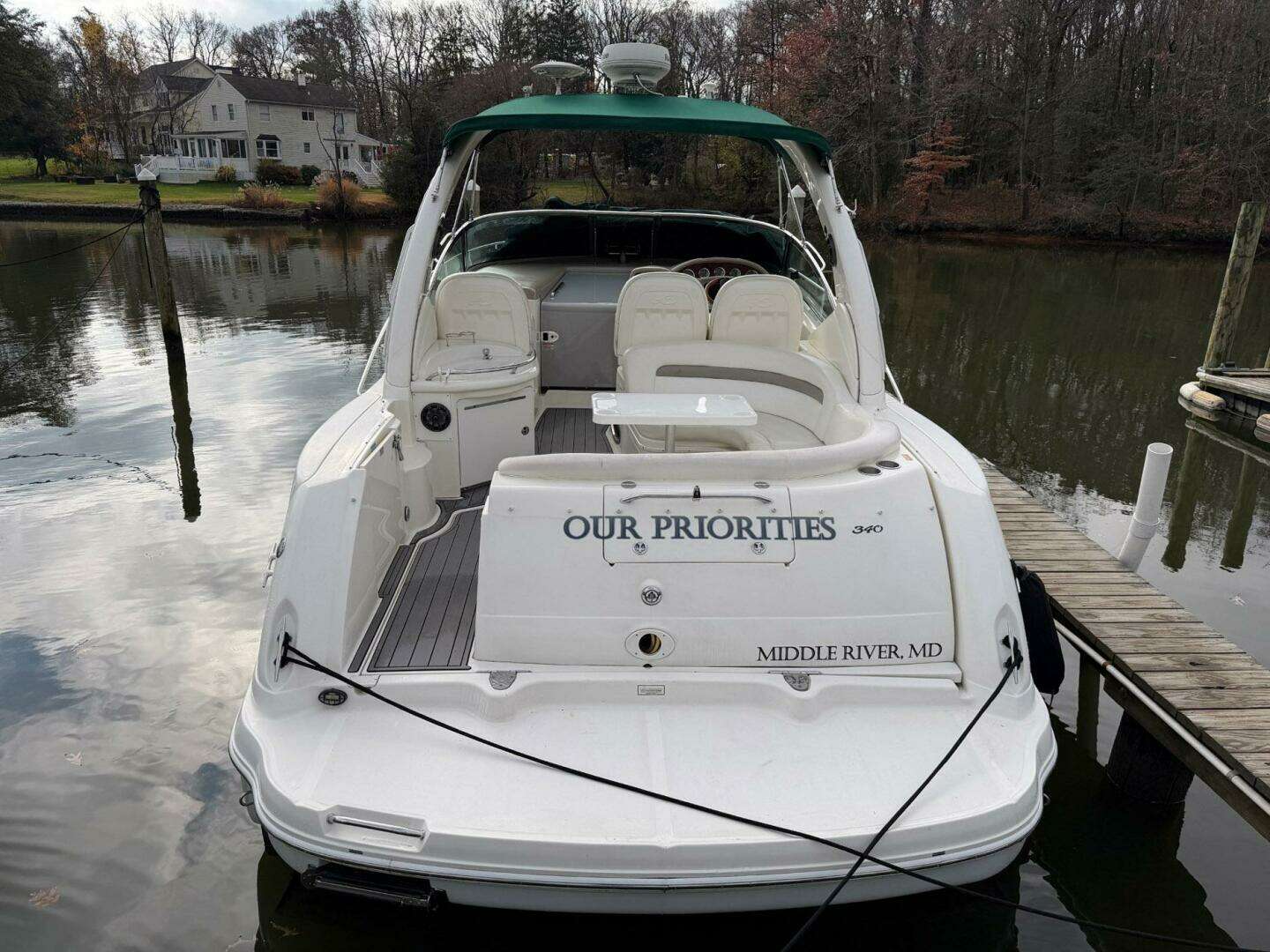 The 2004 Sea Ray 340 Sundancer is a luxurious express cruiser known for its sleek design, comfortable accommodations, and solid performance. As one of Sea Ray's most popular models, the 340 Sundancer offers a perfect blend of functionality and style, making it an excellent choice for weekend cruising, overnight stays, or entertaining guests on the water. "Our Priorities" is powered by twin MerCruiser 8.1S closed cooled engines with only 738 hours and a Kohler 5kw generator. She was used in the freshwater of the Potomac River up until three years ago when the current owner brought her over to the fresh to brackish water of the Middle River area of the Chesapeake Bay. She has a full electronics package including Radar and GPS, and MerCruiser Vessel View. She's also equipped with a bow thruster, upgraded sound system with subwoofer and amp, cockpit fridge, windlass, spotlight, and the cockpit has ample seating for the whole family and guests. In the cabin there is a separate dinette that converts to a sleeper, forward queen size bed, and an aft lounge that converts to a private sleeping quarters for two. The full galley includes a fridge, 2 burner cook top, microwave and sink, and the head boast spacious room and a shower.