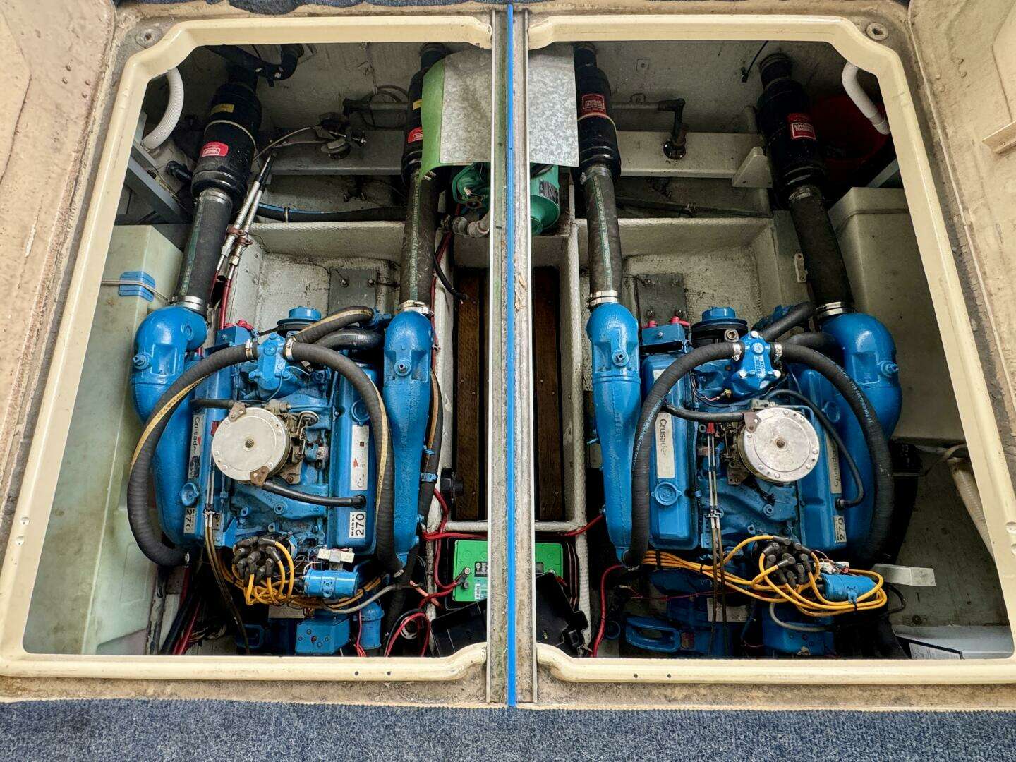 Twin Crusader 350ci 270HP V-8 Inboard V-Drive Engines (2,153 Hours), Warner 1:1 Velvet Drive Transmissions,
