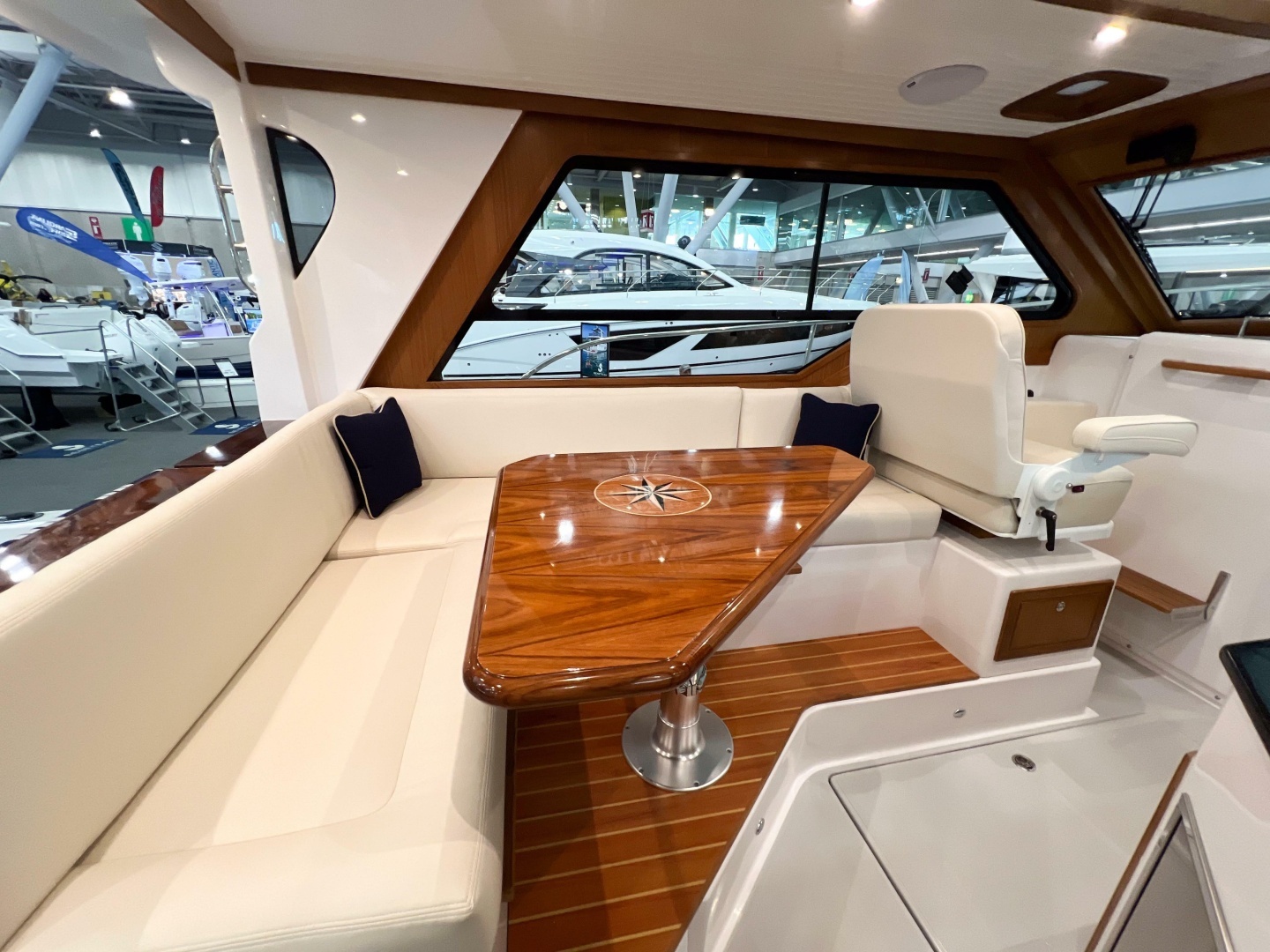 Every detail is designed to keep the boat feeling clean, uncluttered, and inviting.