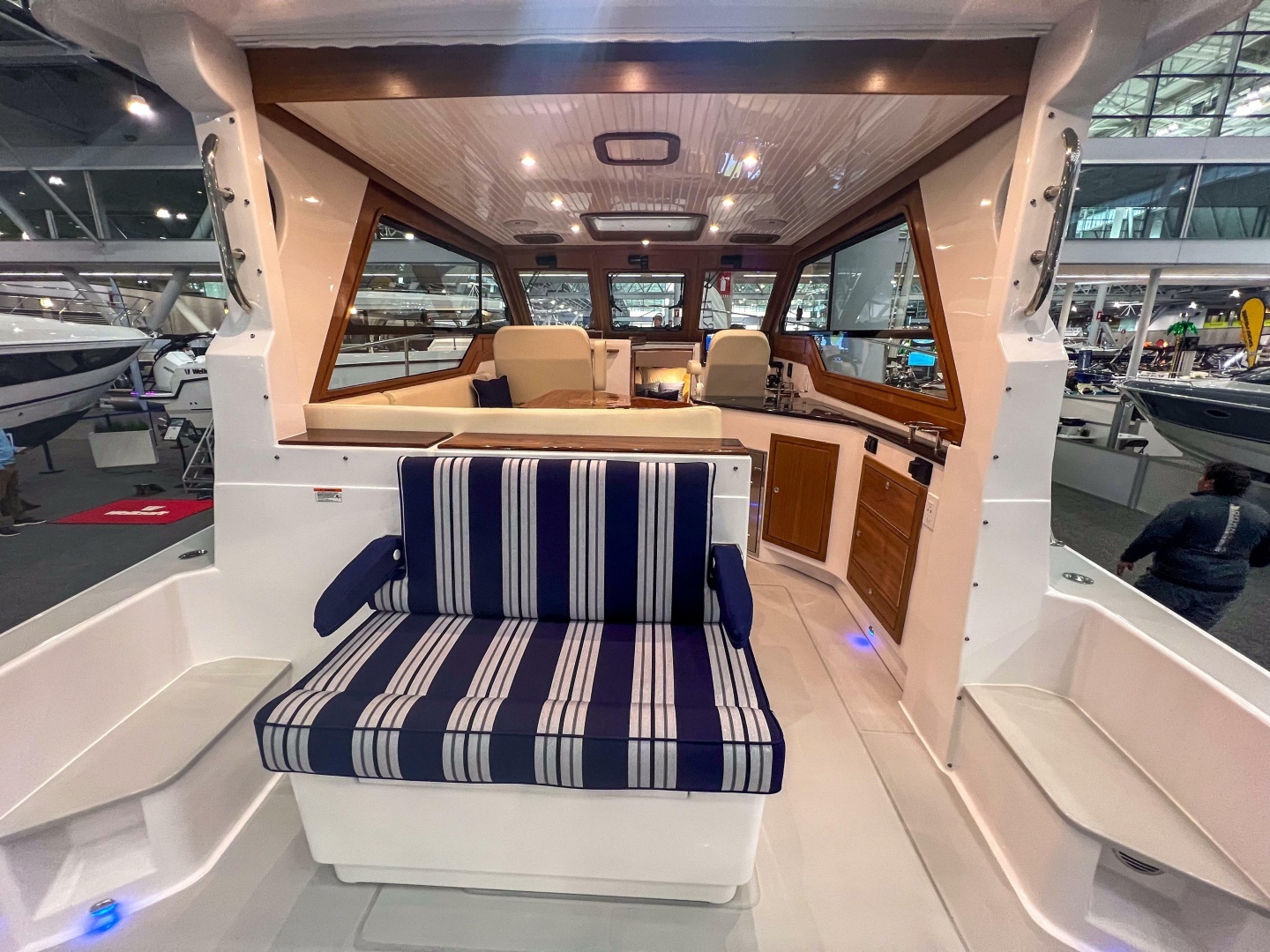 The cockpit and deck layout invite people to settle in without getting in the way of movement or operation: