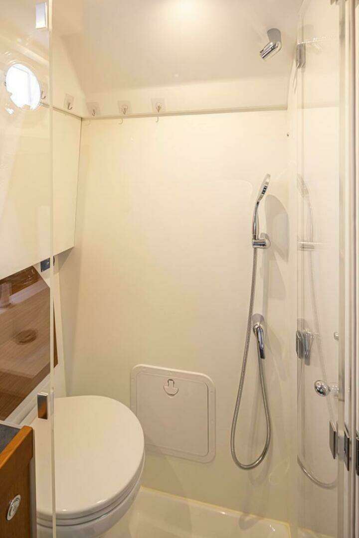 - Ocean air porthole with fly screen and blackout shade as well as an additional 2 x Lewmar opening portholes with blackout shades for a comfortable nights sleep