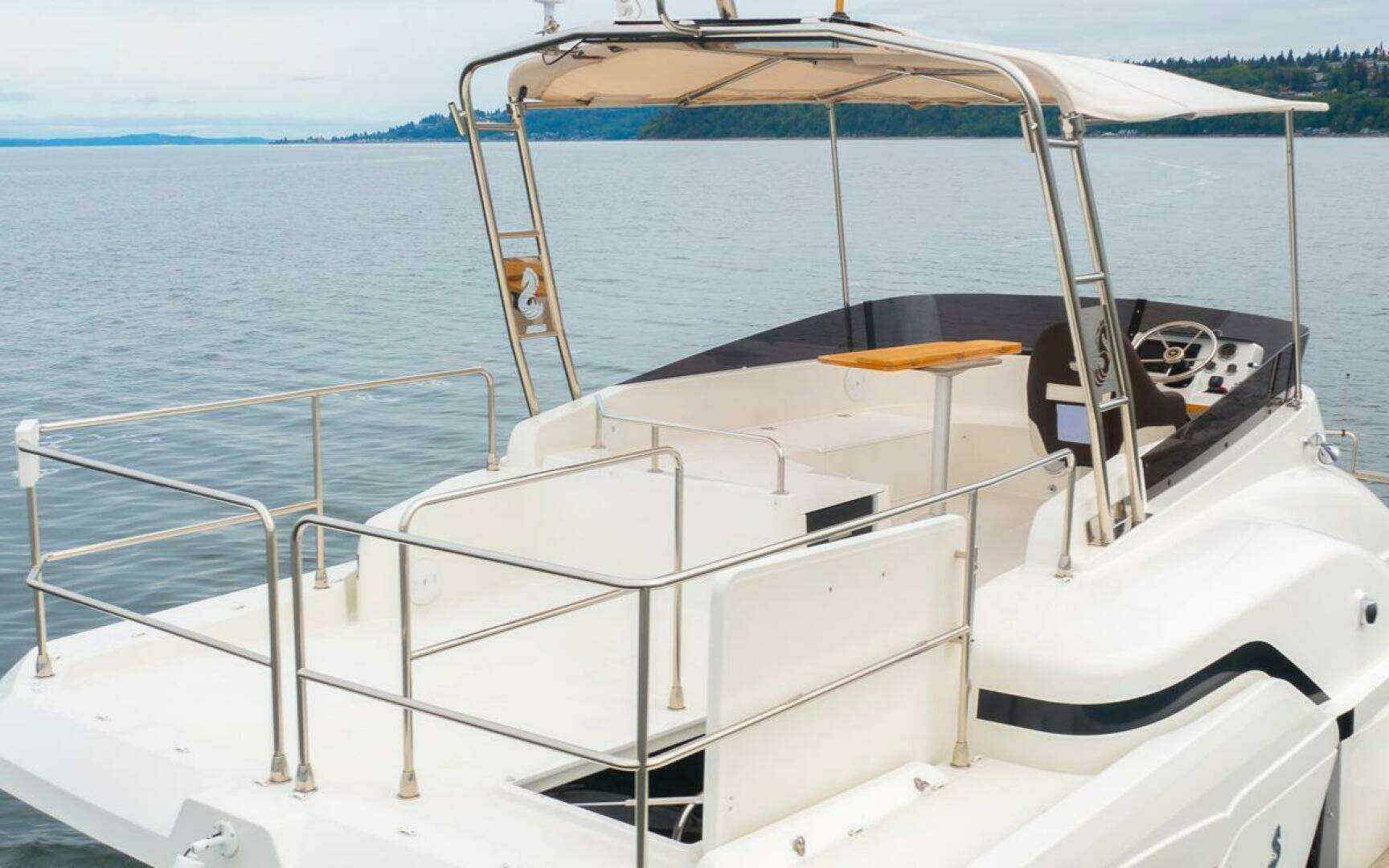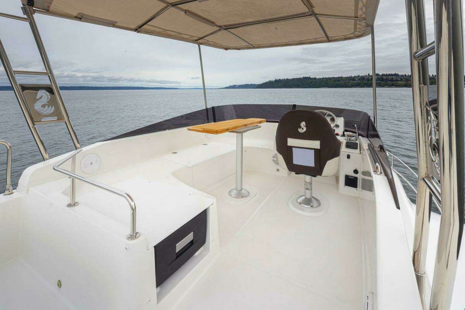- Stainless steel pulpit surrounding aft of flybridge