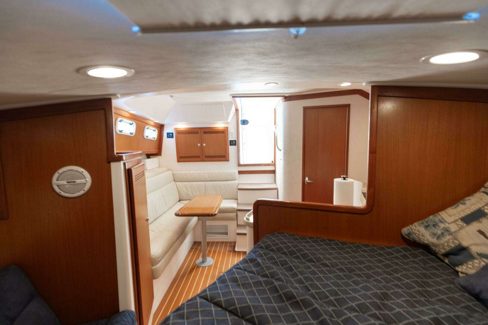 The cabin offers a comfortable and functional layout ideal for overnight trips and extended weekends. Features include a forward V-berth, convertible dinette, enclosed head with shower, and a well-equipped galley—providing all the comforts needed for cruising between fishing trips.