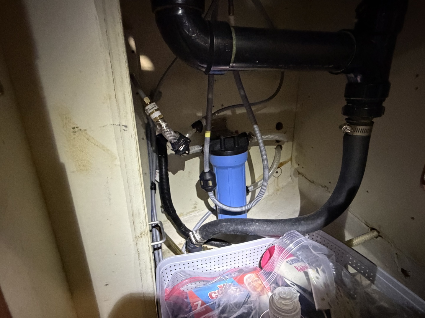 - Galley with newer faucet, stainless sink and microwave (propane oven removed)