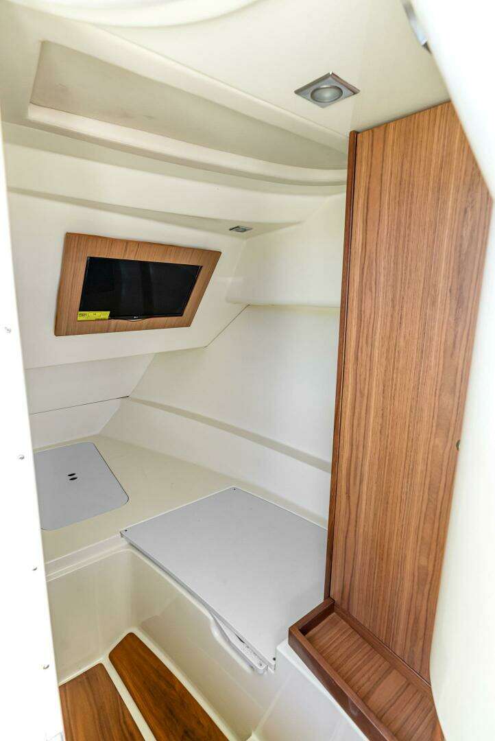 Below deck, you’ll find a beautifully finished cabin with a head and berth—perfect for day cruising comfort or extended afternoons on the water.