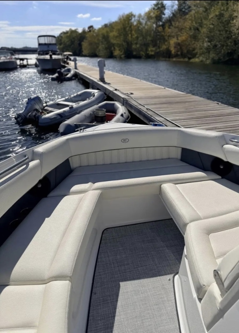 Experience luxury performance at its finest with this stunning 2020 Cobalt R35—a flagship bowrider that perfectly blends power, craftsmanship, and comfort. Powered by twin Volvo Penta 380 HP engines with just 246 hours, this boat delivers an exhilarating ride with the smooth, confident handling Cobalt is known for.