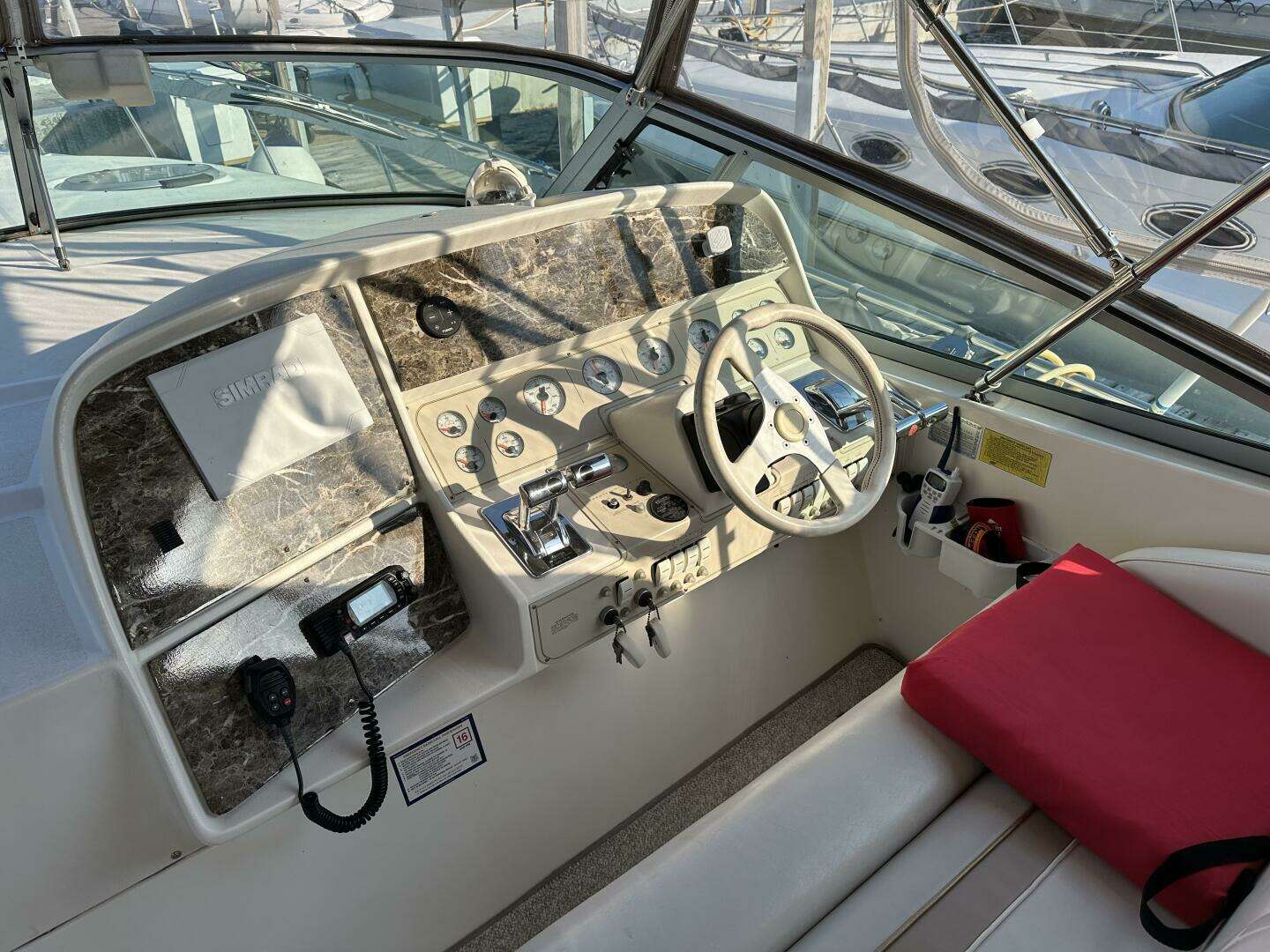 Well-maintained freshwater cruiser with desirable upgrades and proven power. This vessel offers a wide 13’ beam for excellent stability and interior volume and is powered by reliable twin Mercury 7.4L engines. Highlights & Features: • 13’ beam • Twin Mercury 7.4L gasoline engines • 310 HP per engine • 889 engine hours • Simrad GO9 multifunction GPS/chartplotter • Windlass • Heat & air conditioning • New isinglass (2025) • New interior carpet • Hull professionally buffed and waxed (2025) • Fresh bottom paint (2025) This boat shows pride of ownership and is turnkey for the season. A strong opportunity for buyers seeking a well-equipped cruiser with recent updates.
