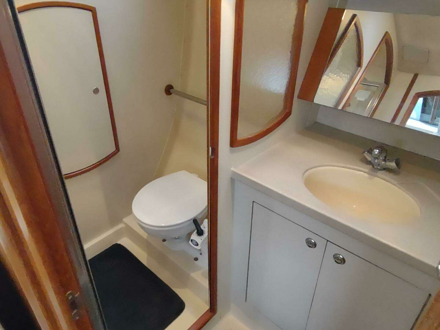 6) Large head compartment with separate stall shower and new standard size toilet in 2025