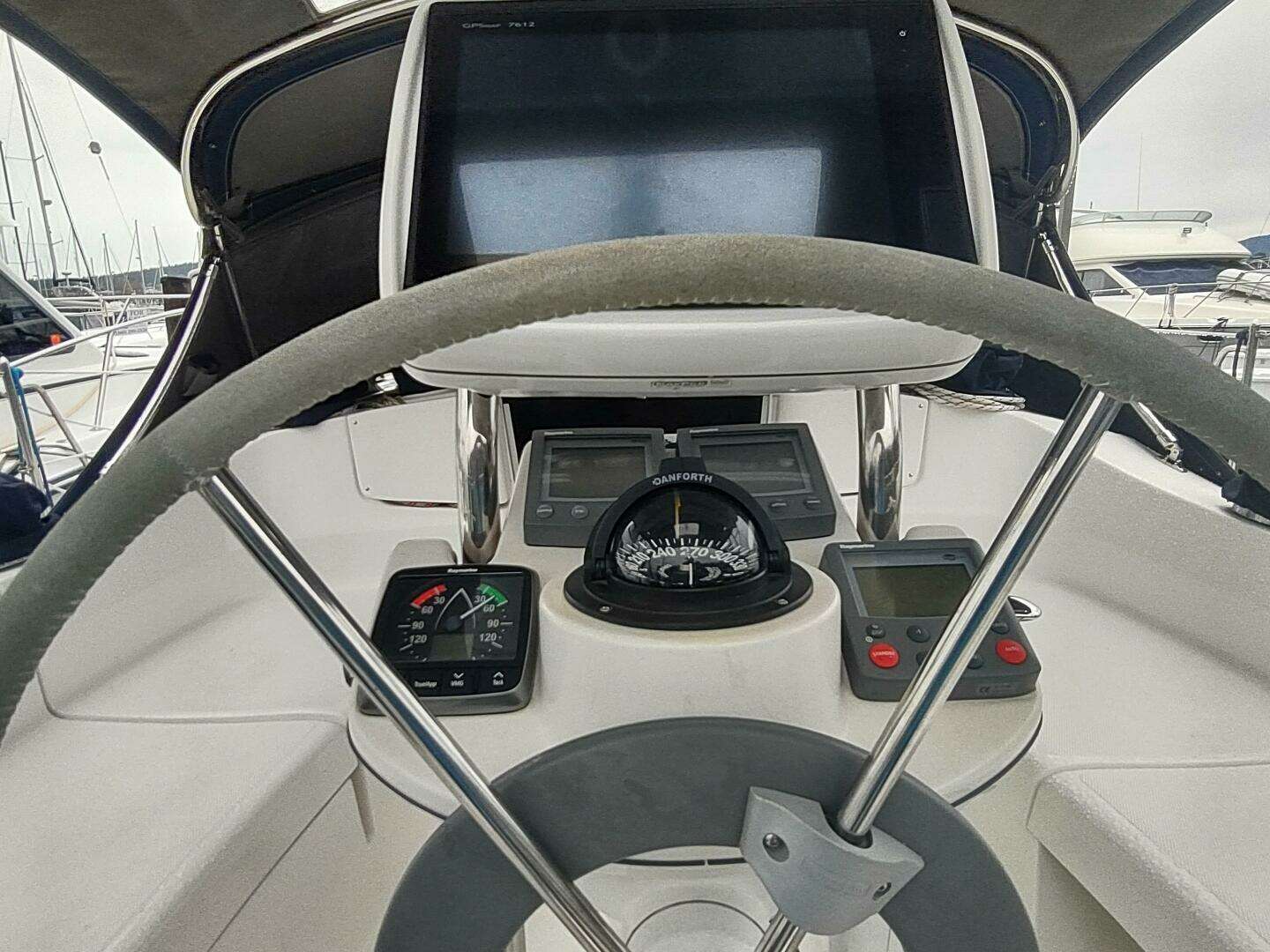 7) Garmin 12" plotter/radar/depth/auto pilot/wind meter/AIS at helm