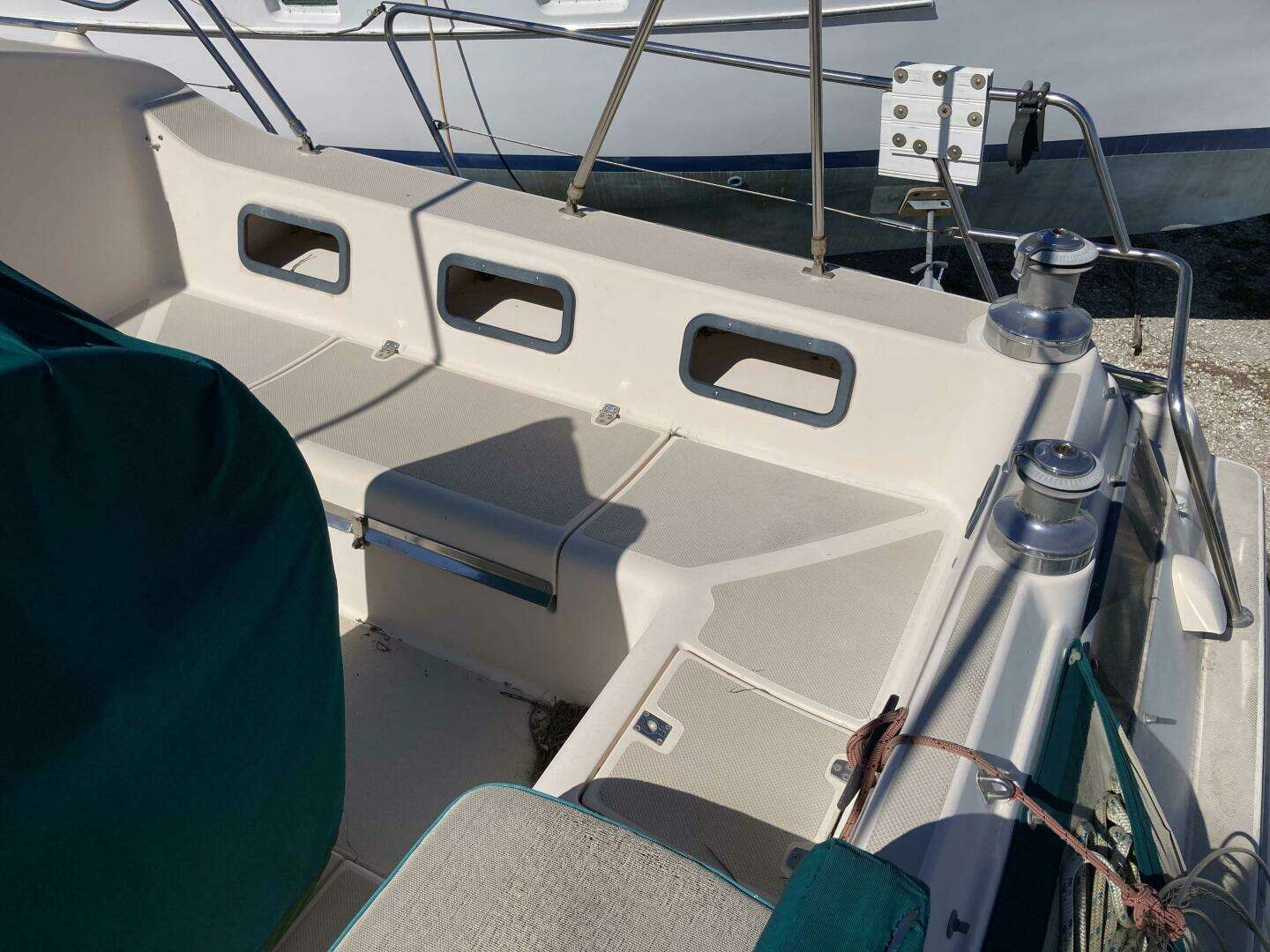 LPG tank in vented deck locker, Fresh water deck wash down pump, Fresh water shower in cockpit