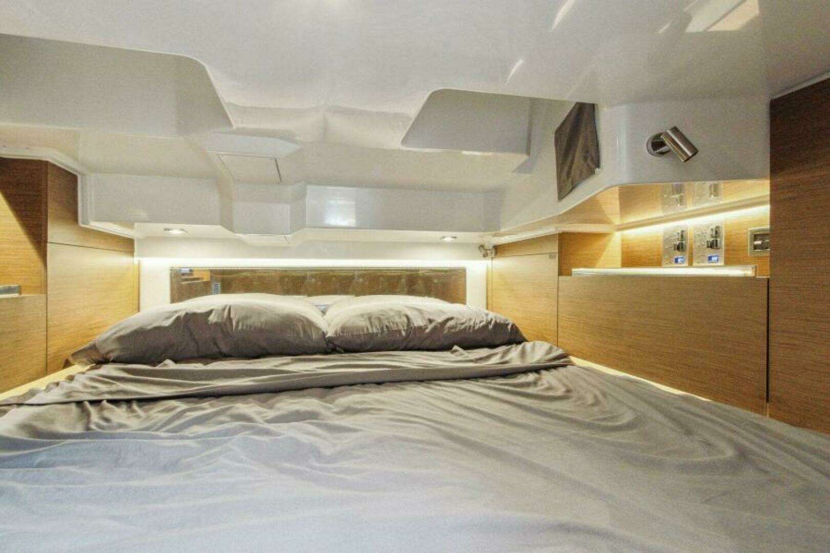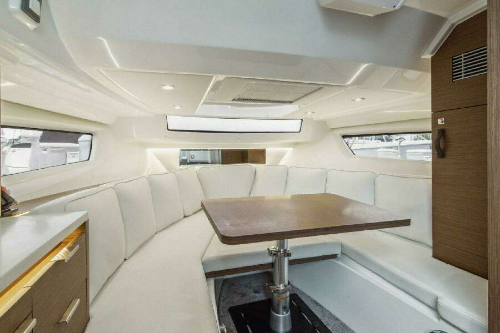 “VELOCITY” is a 2022 Jeanneau Leader 10.5 WA (Series 2) with twin 425 XTOs, Helm