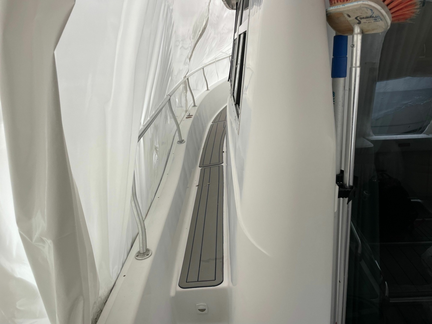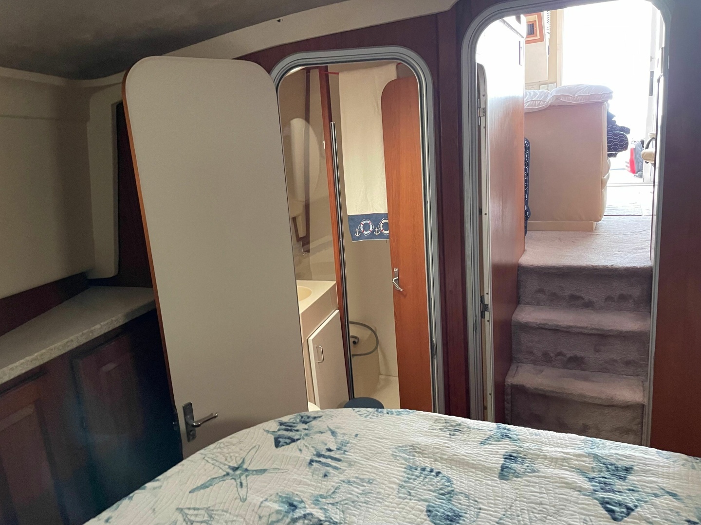 "Summer Breeze" is a well-appointed Mainship 350 with both the desirable twin engine package with upper and lower helms. The large flybridge with expansive aft deck provides an excellent social space with plenty of room for guests when cruising, all with excellent 360-degree visibility. Wide, molded fiberglass steps replace the standard ladders, offering safety and comfort. Bridge walkthroughs along with oversized handrails and raised toe rails to add safety. Below decks are custom cabinetry, thick pile carpeting and the finest in fabrics. A spacious salon, workable galley, easy to maintain head, and truly comfortable accommodations are found with two staterooms.