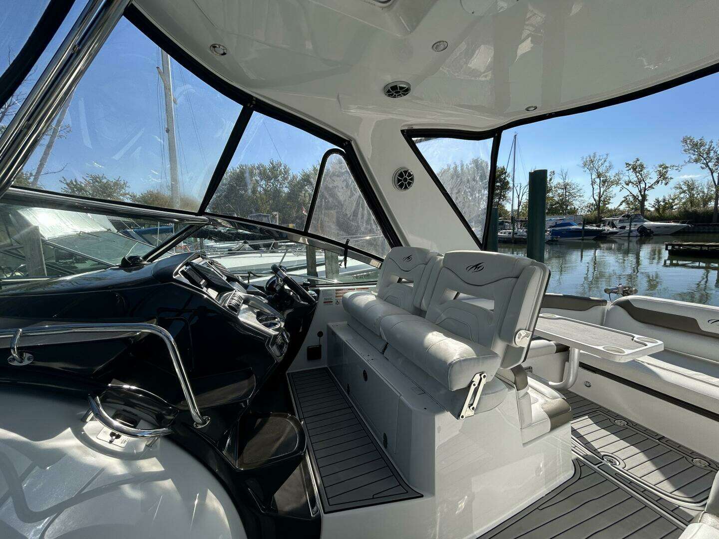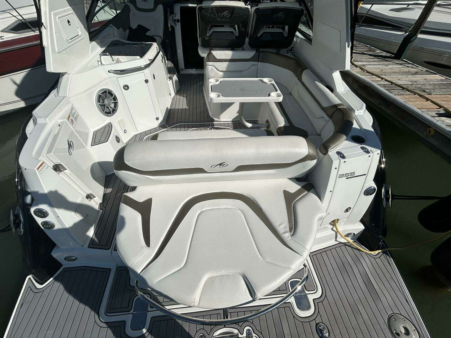 Step aboard this stunning 2015 Monterey 355 Sport Yacht — a true blend of style, comfort, and versatility. From the moment you board, you’ll appreciate the seamless flow between cockpit, salon, and deck — designed for both entertaining and relaxation. The cockpit is built for flexibility, featuring Monterey’s exclusive Sun‑Island seating which adapts to your preference — lounge, sunpad or facing forward for conversation. You’ll find plenty of storage tucked away beneath cushions, keeping the space tidy and inviting.