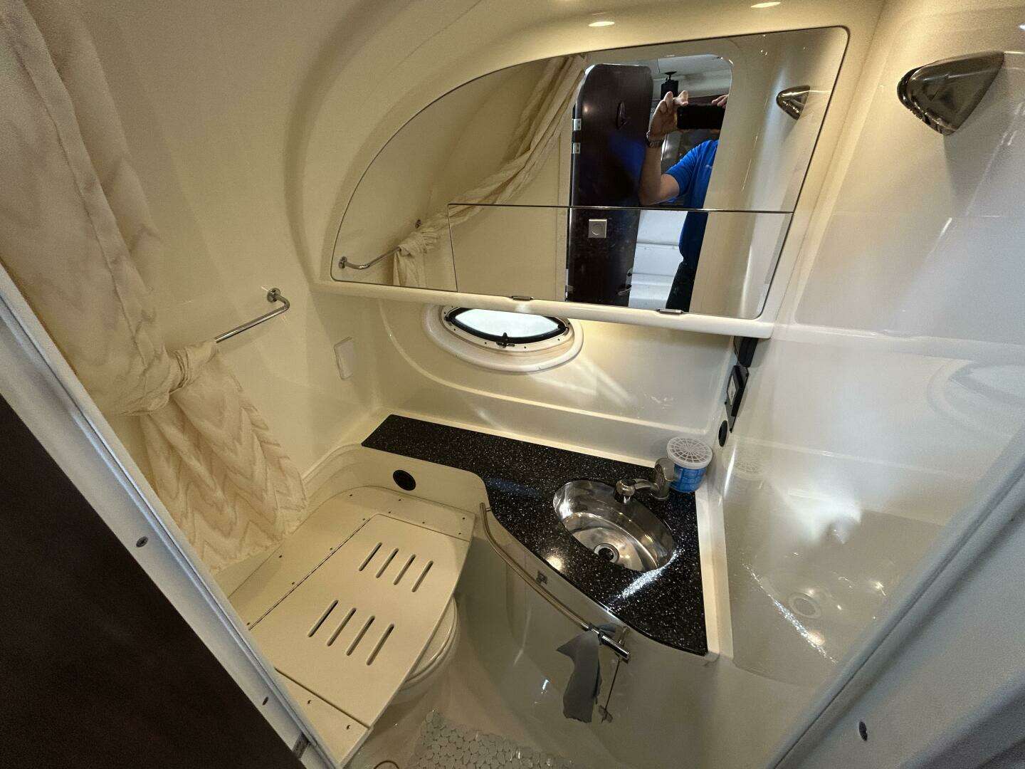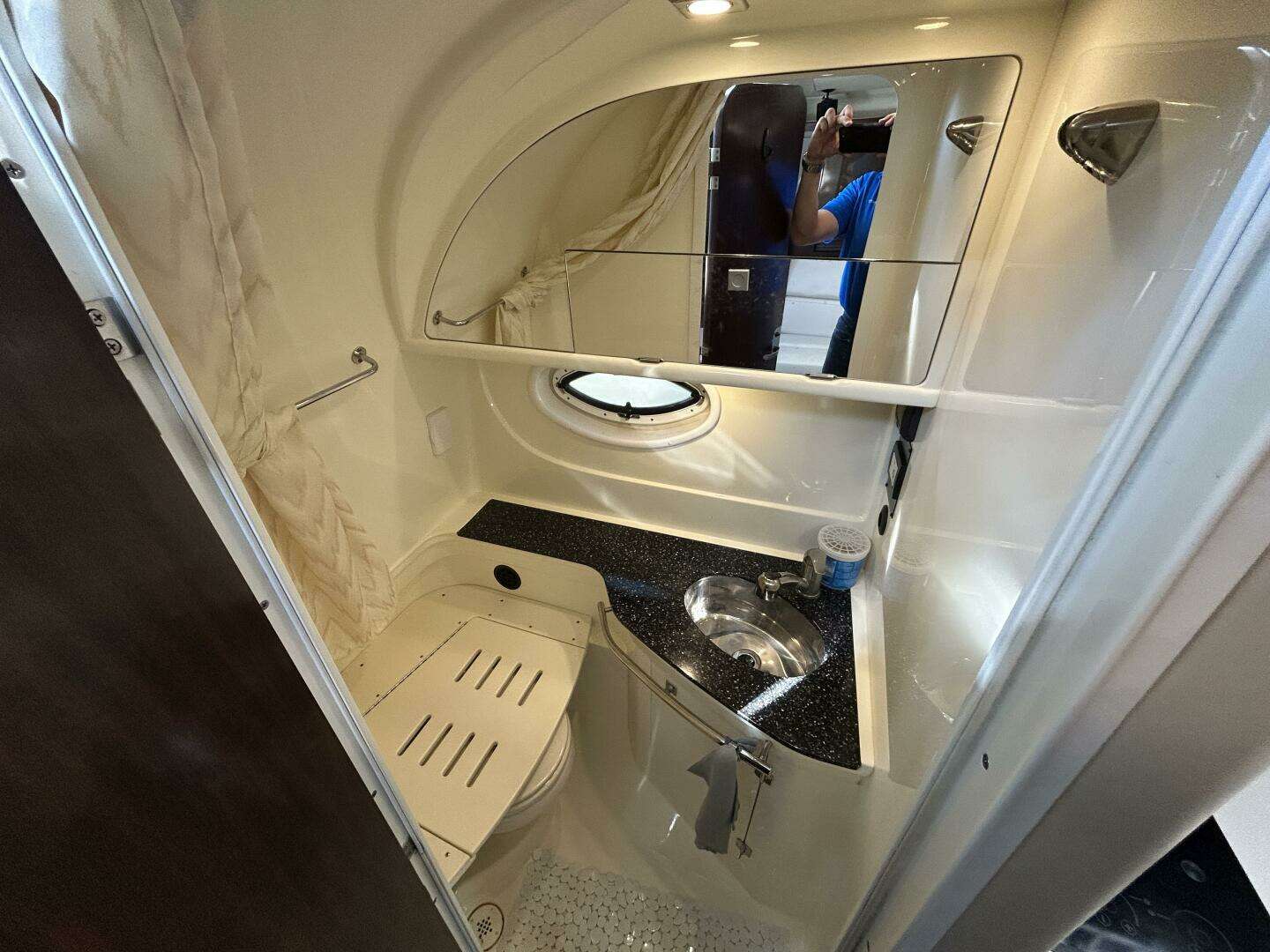 Relax in the forward cabin or retreat to the mid‑cabin — both offering privacy and comfort. The salon’s seamless transition to the galley and dining area makes it easy to host even when underway. A well‑appointed head with shower ensures convenience without sacrificing style.