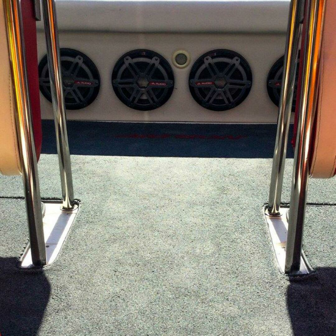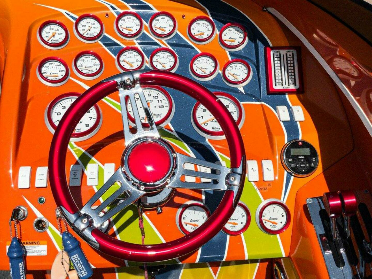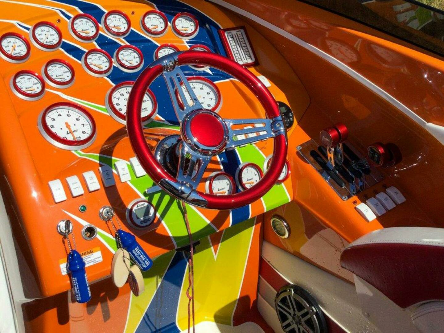 The high-performance dash is both functional and user-friendly, showcasing Livorsi colored split shifters, Livorsi Monster Bezel gauges, a GPS speedo, custom wheel, and mechanical indicators. Elevating your onboard experience is a premium JL Audio system with programmable LED interior, cabin, engine compartment, and underwater lighting, all controllable by remote. The Nordic cockpit offers removable carpet, plush seating, colored drink holders, SS grab rails, and power bolsters for utmost comfort. Shore power capability adds convenience to your outings.