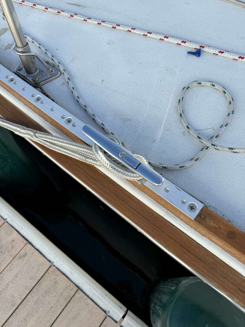 • New stainless steel cleats – including 2 bow, 2 stern, and 2 track-mounted midship cleats