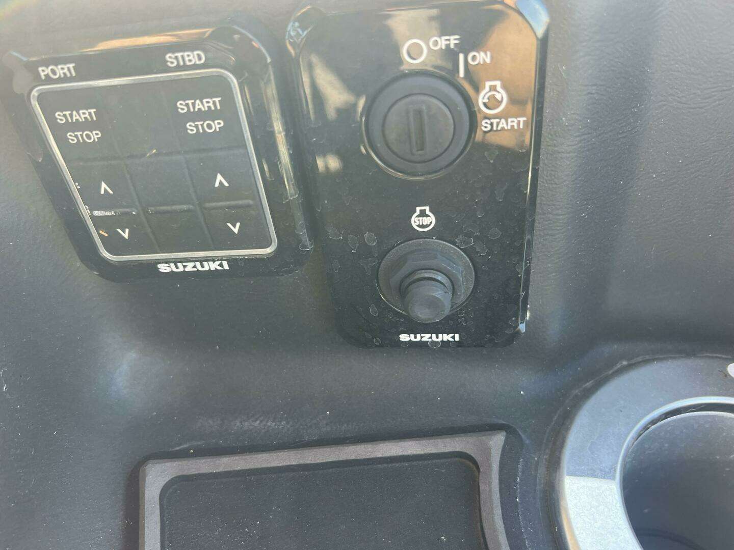 Premium 2024 Premier 330 Escalante with twin Suzuki 350s, PTX performance package, joystick docking, upper deck with slide, custom interior, saltwater package, Power-Poles, and Phoenix tri-axle trailer. Low hours!!