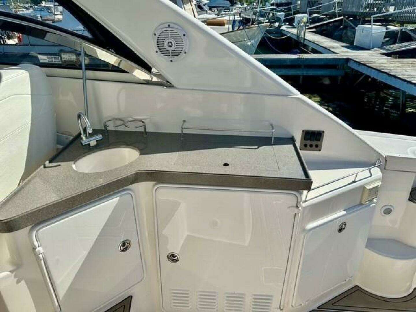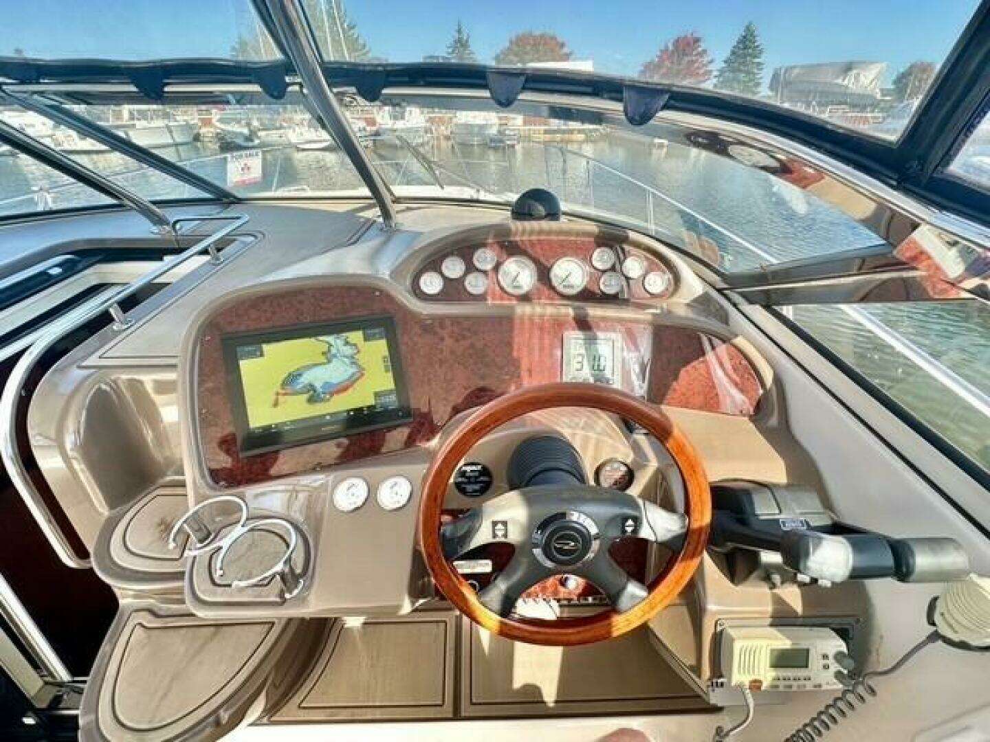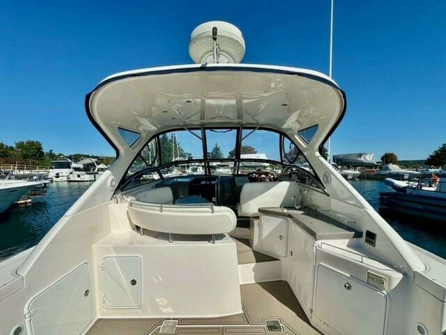 This is a rare opportunity to purchase a move in ready vessel located in Georgian Bay Ontario. Pride of ownership sings on the exterior, and exterior of this rare Hard Top Euro Lounger 3560 Commadore thank to the current owners meticulous attention to not only the cosmetics, but also to the mechanical systems stem to stern.