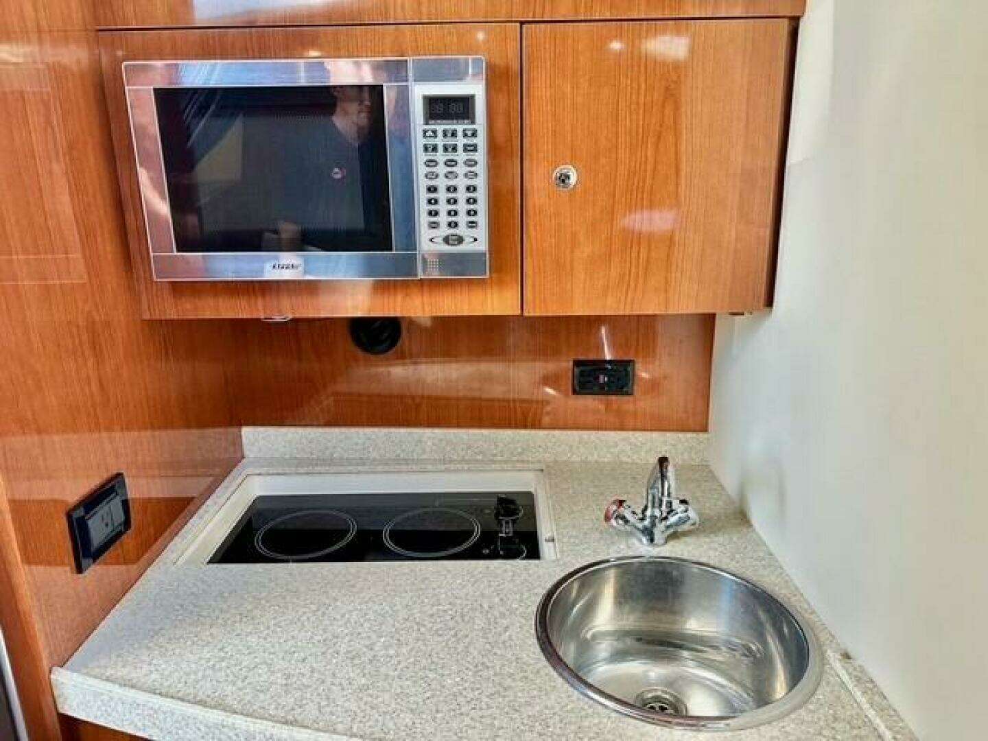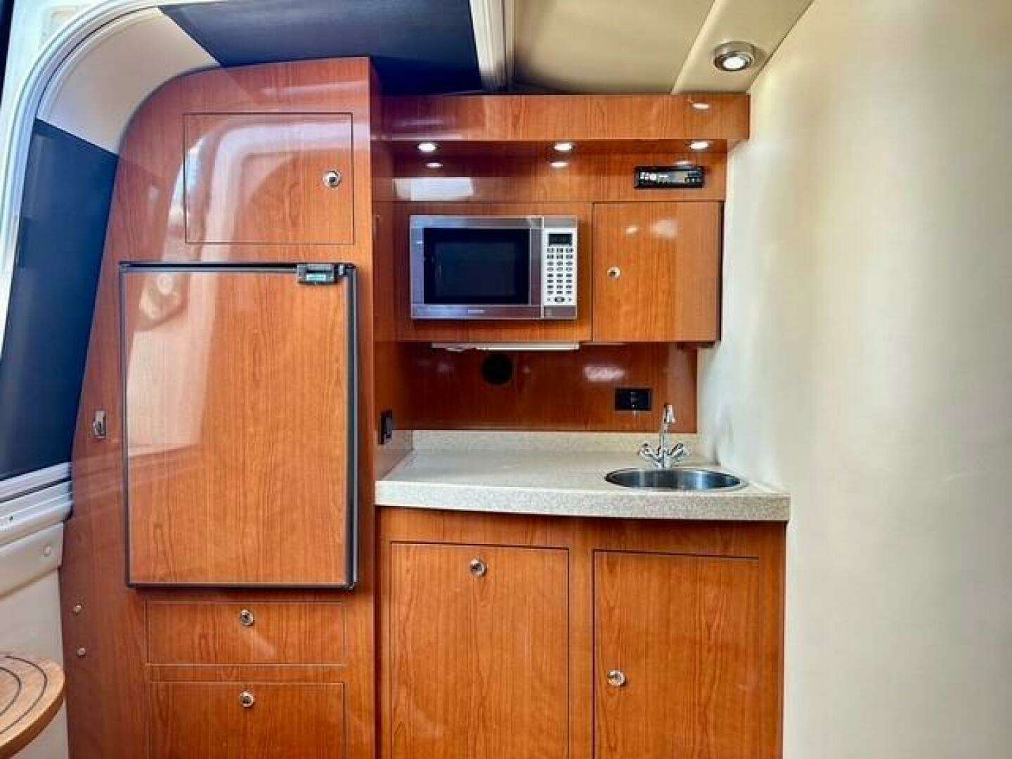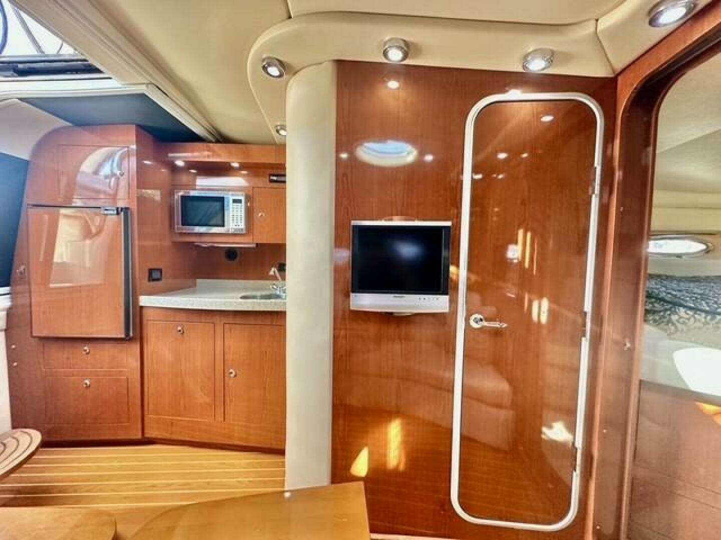 This is a rare opportunity to purchase a move in ready vessel located in Georgian Bay Ontario. Pride of ownership sings on the exterior, and exterior of this rare Hard Top Euro Lounger 3560 Commadore thank to the current owners meticulous attention to not only the cosmetics, but also to the mechanical systems stem to stern.