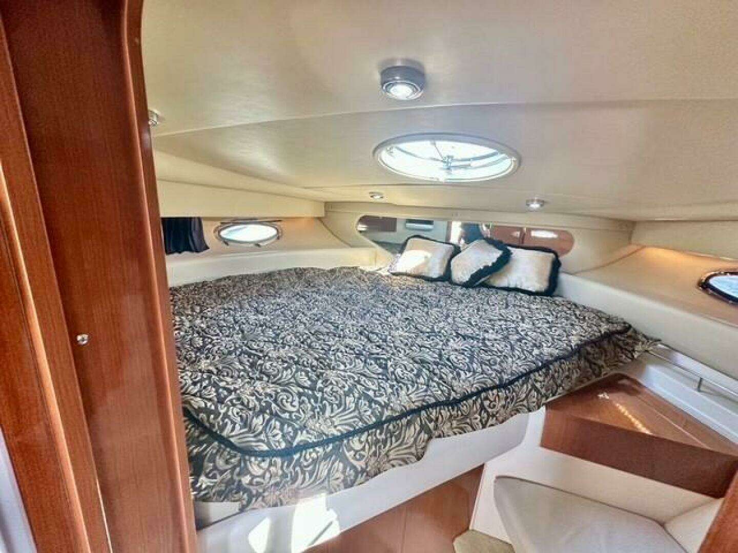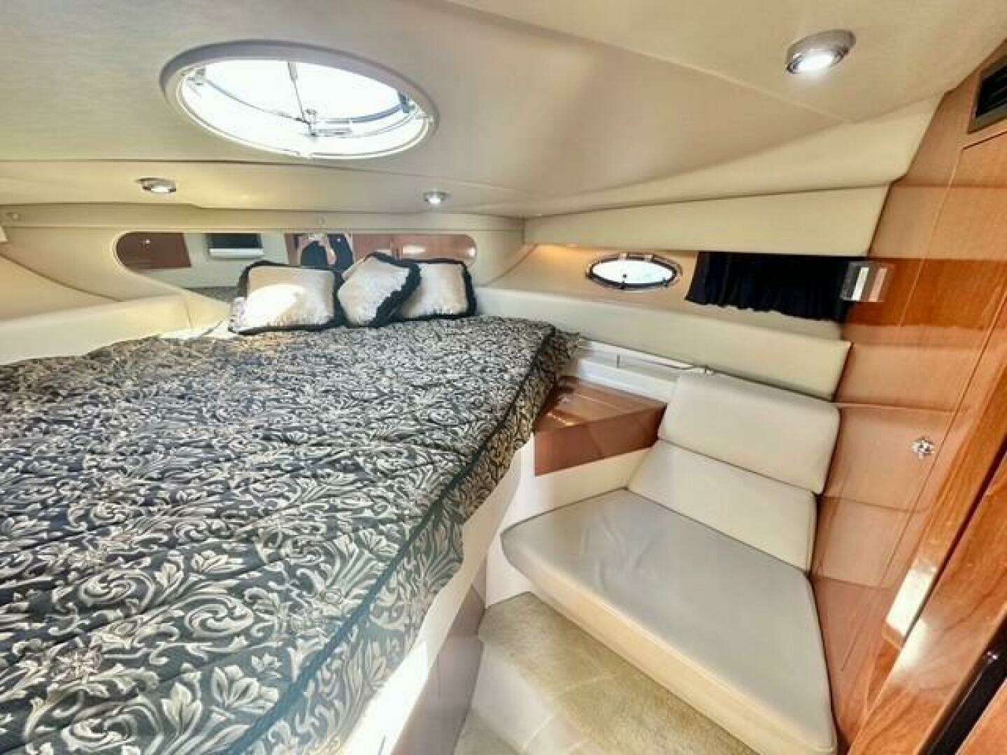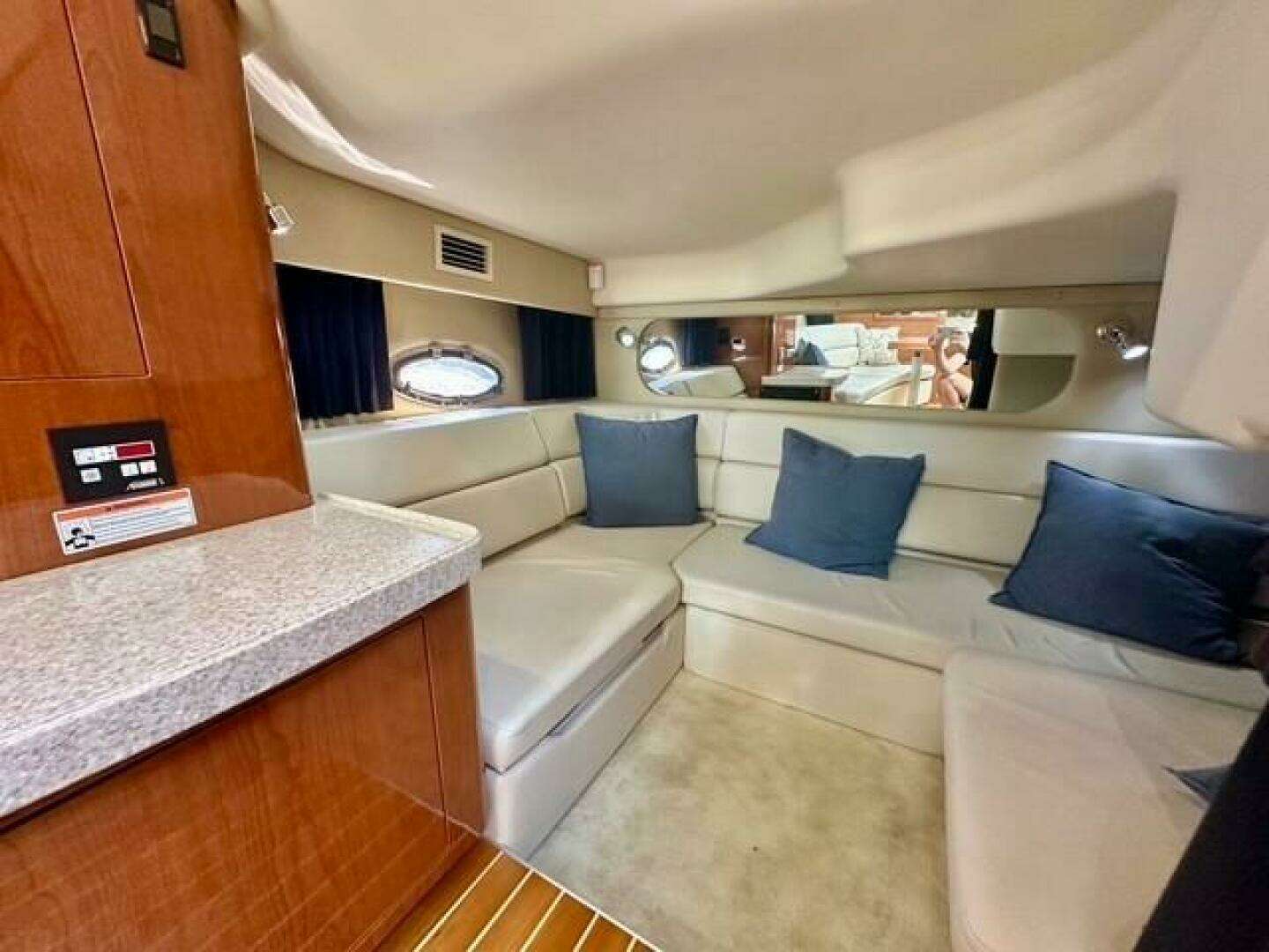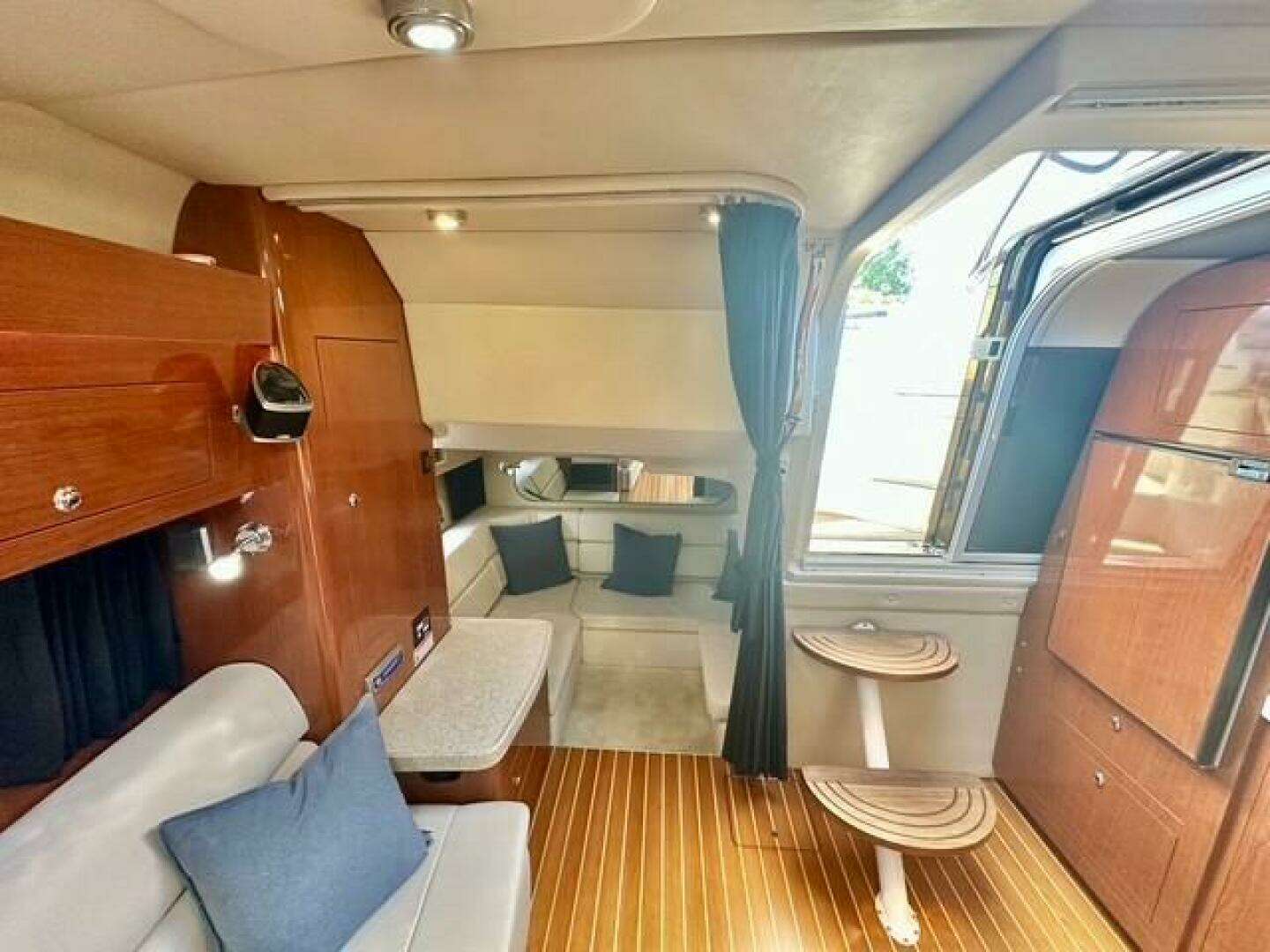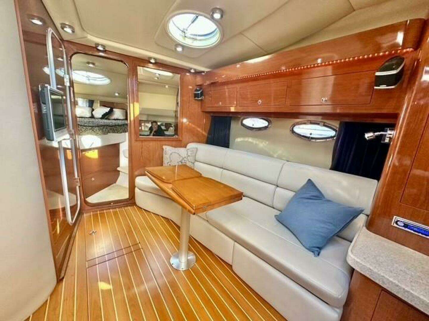 The Regal 3560 Commodore is actually 38′ long and has a huge cockpit and saloon. There’s a spacious forward cabin (with fixed double berth) and fabulous separate aft cabin that doubles up as either sleeping accommodation for 2 or a nice lounge area for the kids. With a large galley, separate toilet and shower, and onboard generator + heating; it’s the perfect family sportscruiser. Great for entertaining the kids for long weekends on the water, or for hosting cocktail parties with the grown-ups…