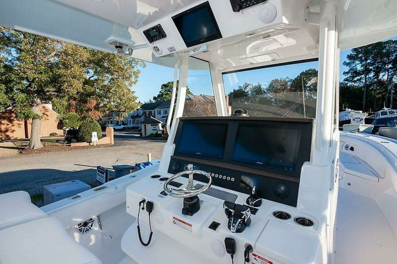- Offshore Command Center: Garmin® Multi-Function Displays with Digital Switching and Monitoring, Proprietary Regulator MyHelm™ Interface for Seamless and Intuitive Connectivity of Key Functions via Touchscreen, and Dedicated MyHelm™ Key Fob for Main Power and Lighting Circuits