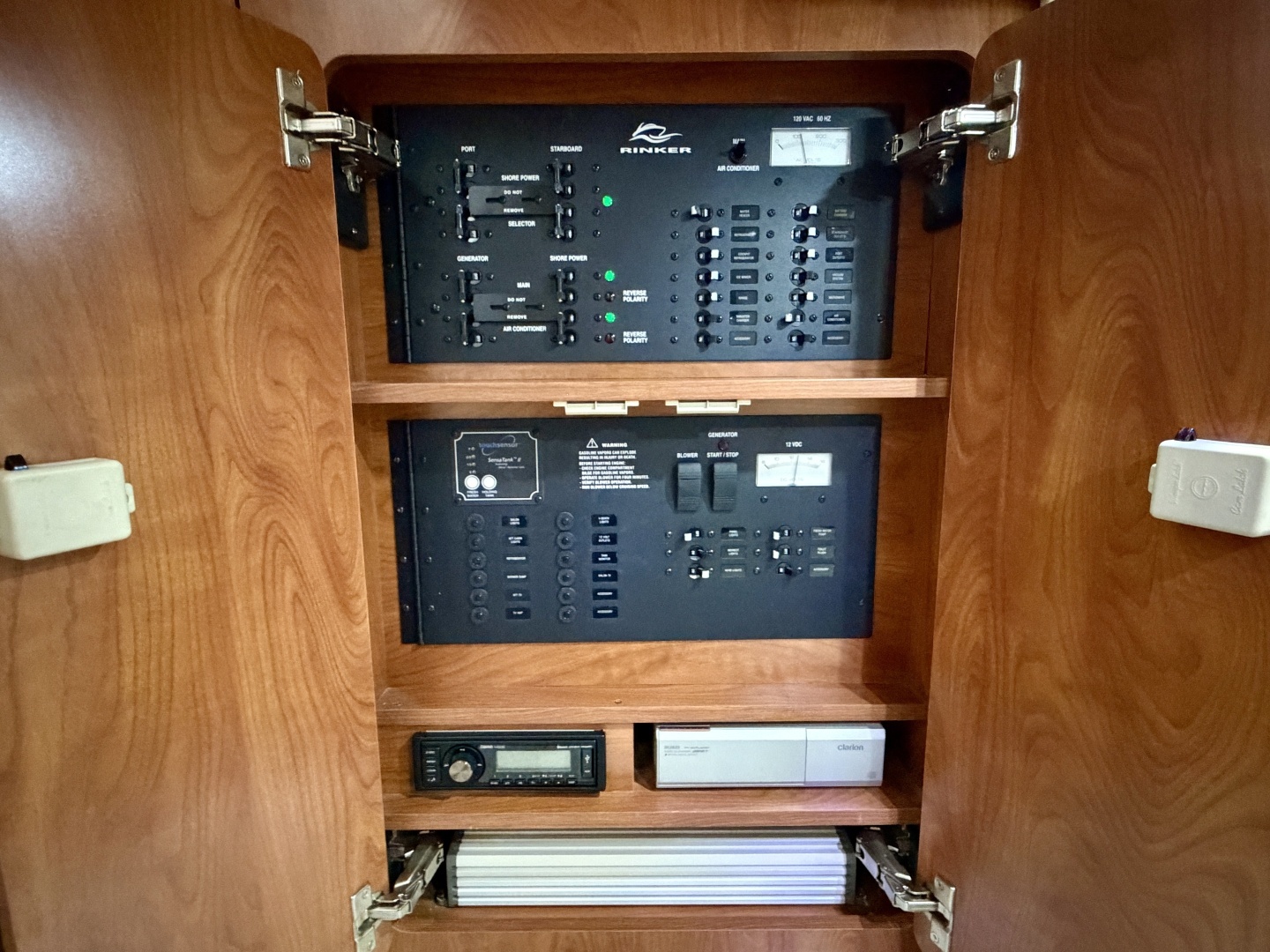 Port & Starboard Shore Power Hookups, Fresh Water & Holding Tank Monitor, 6' 10'' Cabin Headroom,