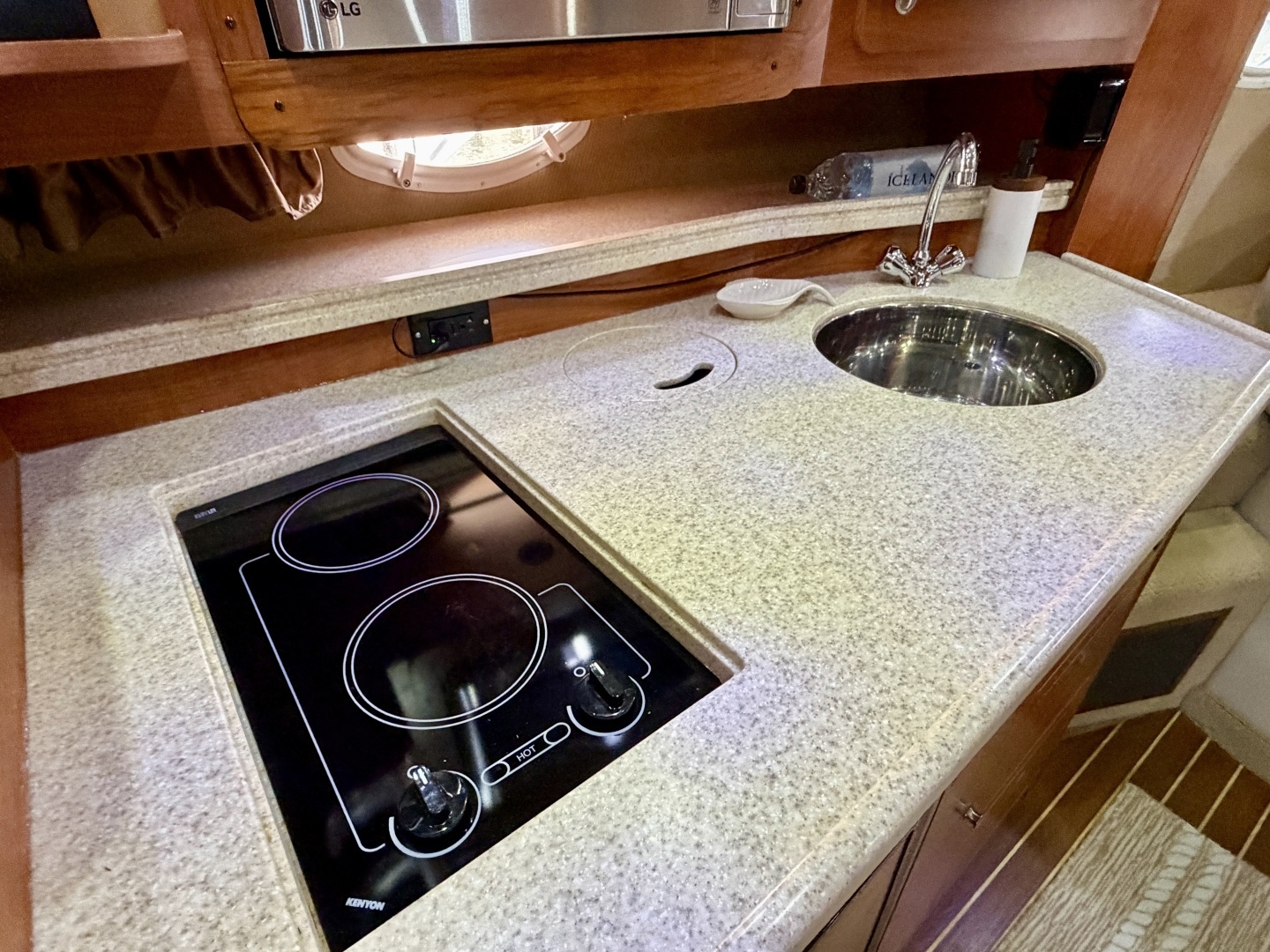 Cabin AC/DC Refrigerator, Dual Burner Smooth Top Electric Range, Built-In Microwave, Stainless Sink,